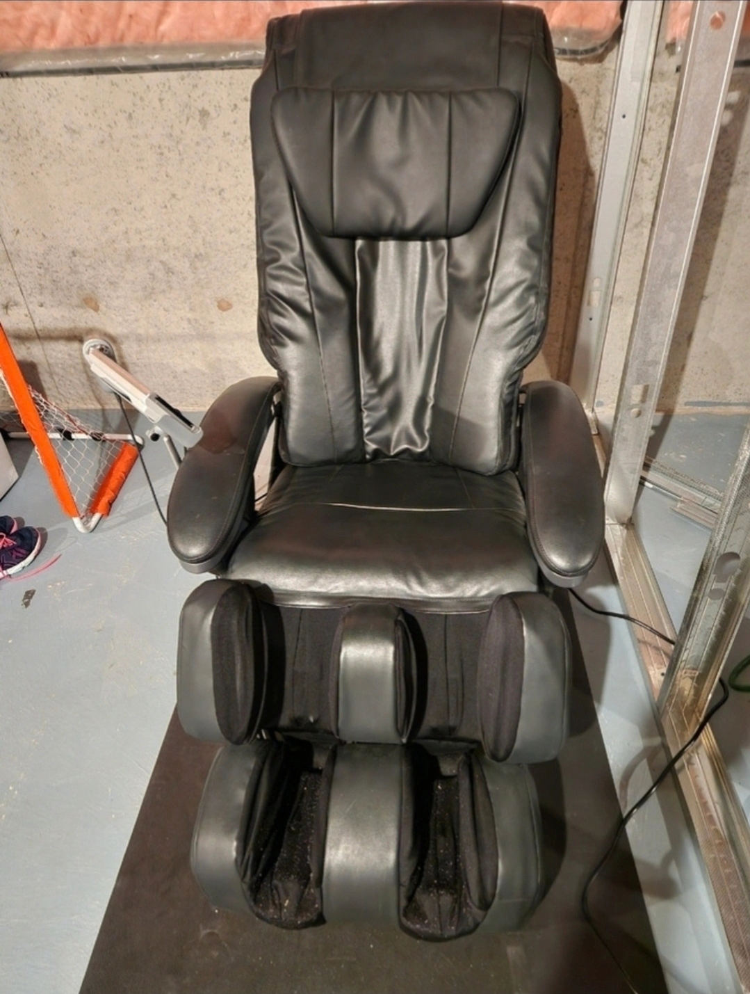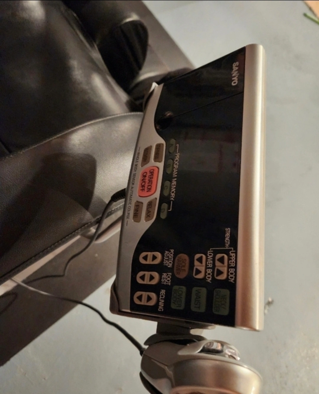 10Get ready to relax with this Sanyo massage chair! It features upper and lower body massage options, including neck/shoulder, waist, sole/lower body, and seat/back sections. The chair also has program memory settings for customized massages and adjustable foot rest and reclining features.