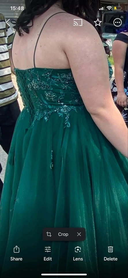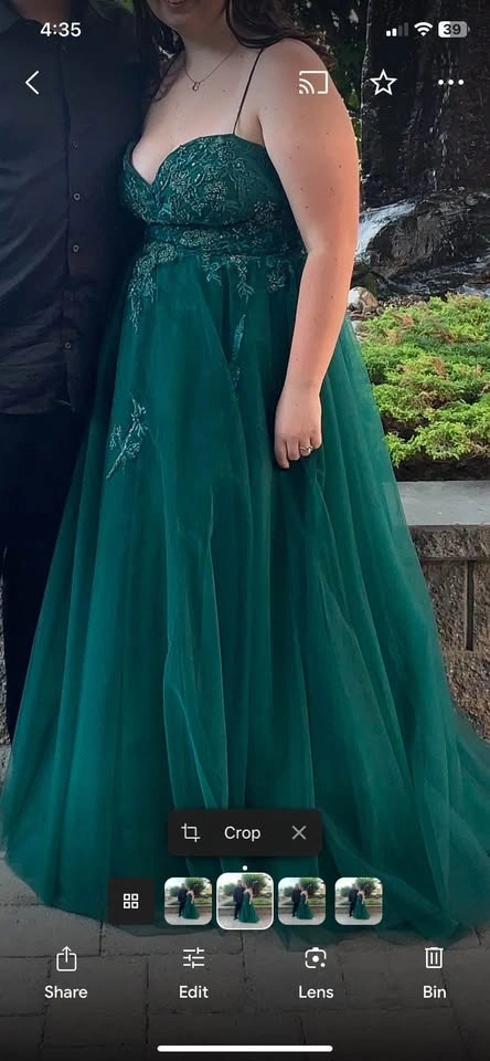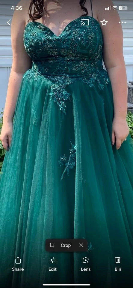 Worn once for grad and photos in 2023! Has POCKETS! Very comfy, size 18 but it’s a corset back so sizing can change. No alterations have been done to the dress. Try-ons are welcome! Originally over $1200, asking $680 or best offer. Would like to sell before end of year. Pickup preferred but can possibly meet up depending.