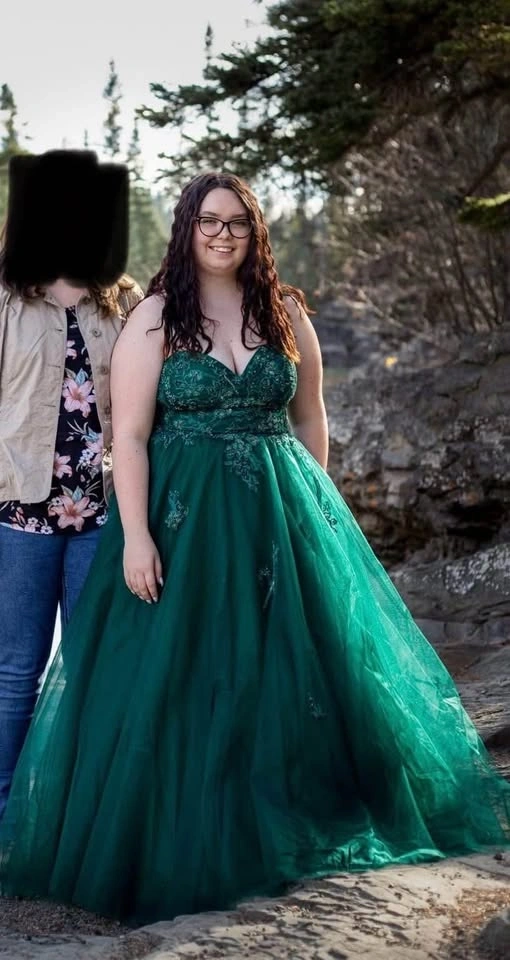 Worn once for grad and photos in 2023! Has POCKETS! Very comfy, size 18 but it’s a corset back so sizing can change. No alterations have been done to the dress. Try-ons are welcome! Originally over $1200, asking $680 or best offer. Would like to sell before end of year. Pickup preferred but can possibly meet up depending.