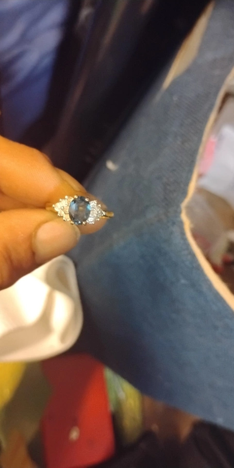 Selling a beautiful Antique sapphire and diamond ring. It features a central sapphire stone surrounded by smaller diamonds. The band appears to be gold. A lovely piece for any occasion!
