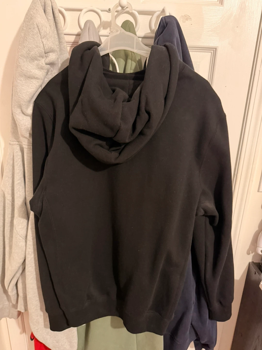 Black pullover hoodie from October's Very Own featuring the classic Roots Canada owl logo. It's a cozy staple for any wardrobe. Cotton blend material.