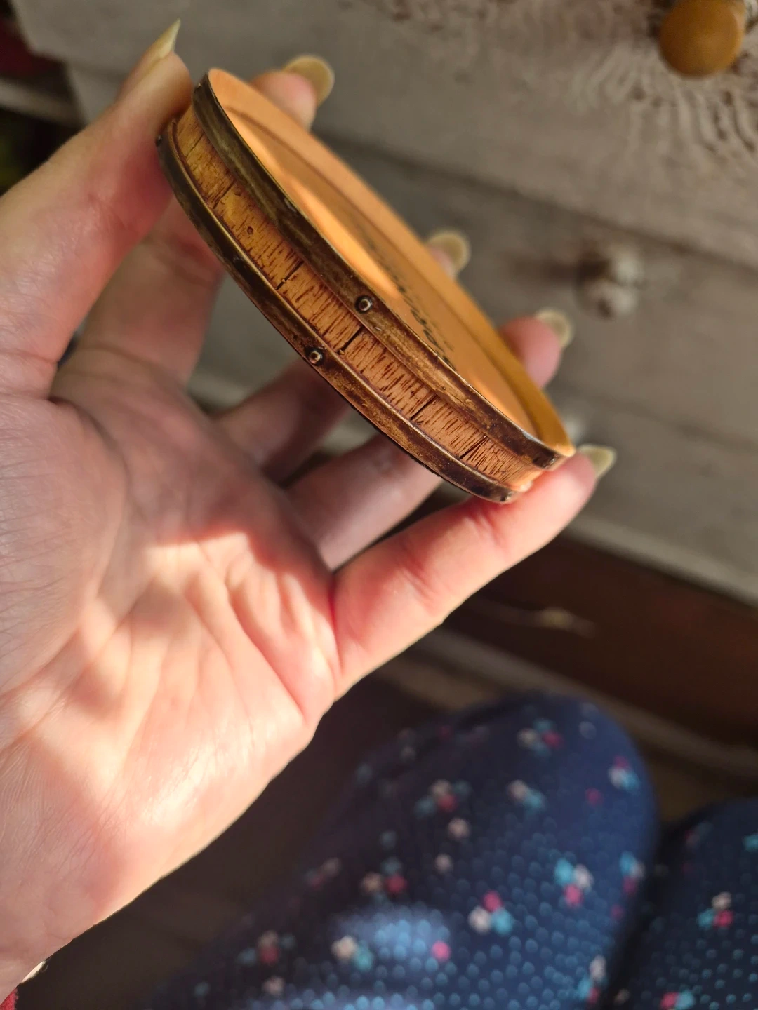 These are Spring Mill Distillery barrel top coasters. They're designed to look like wood barrel tops. Perfect for protecting surfaces from drinks!