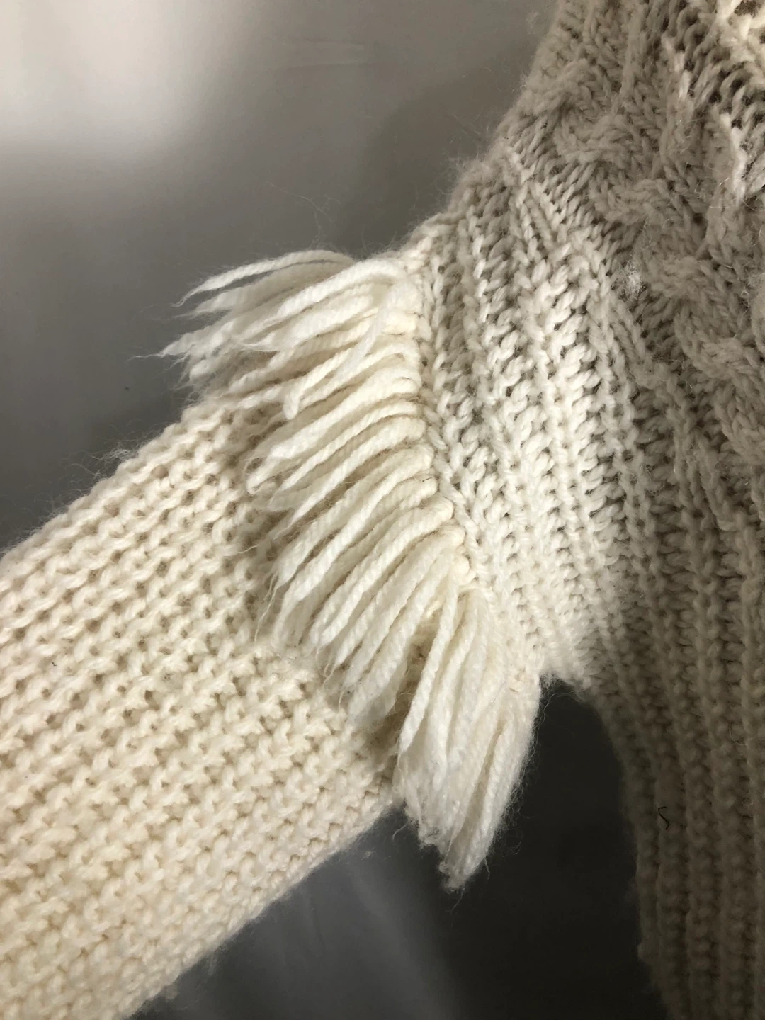 Women’s Cream Fringed Sweater. Size Small. 22” pit to pit
