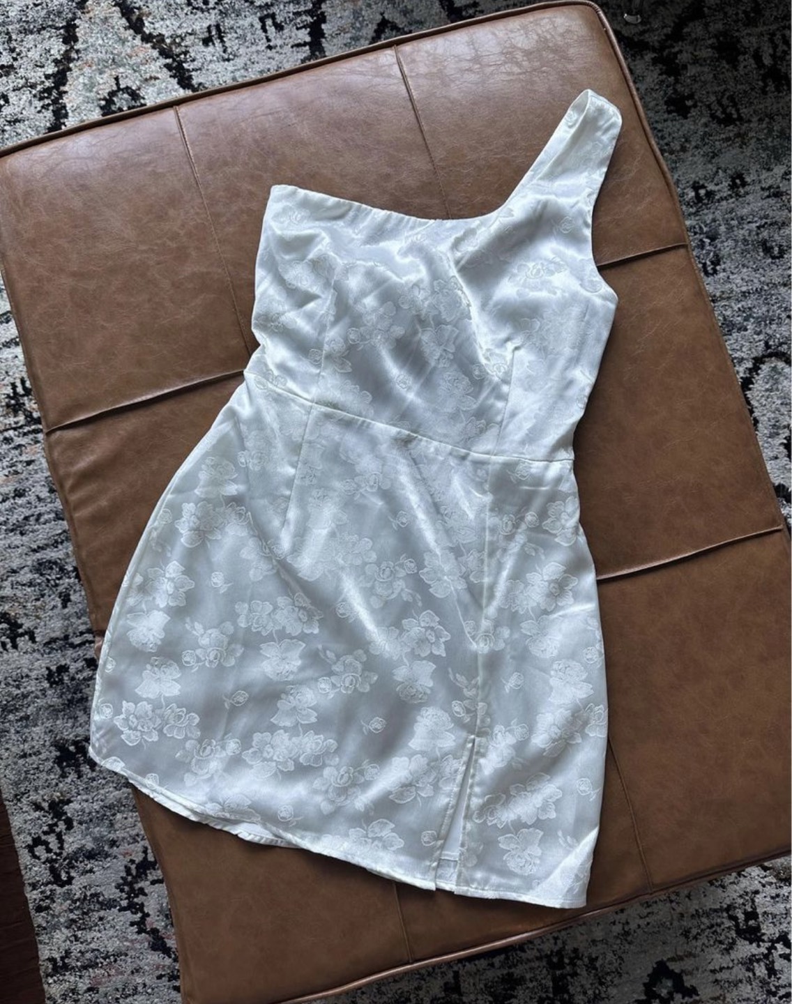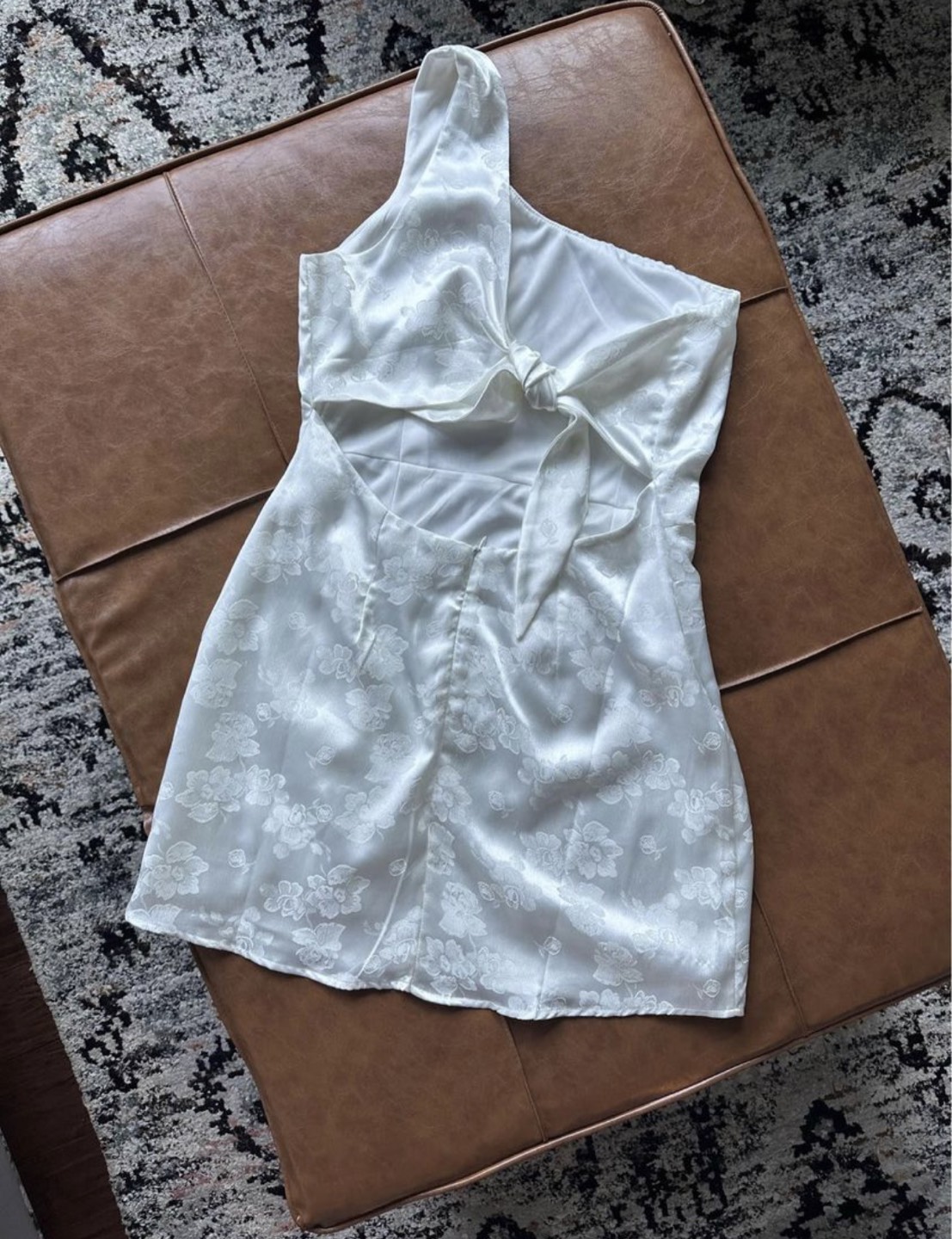 Brand new, never worn satin white shoulder dress Perfect for bridal, bachelorette or birthday! Size 6/8 women’s Pick up in Kitsilano