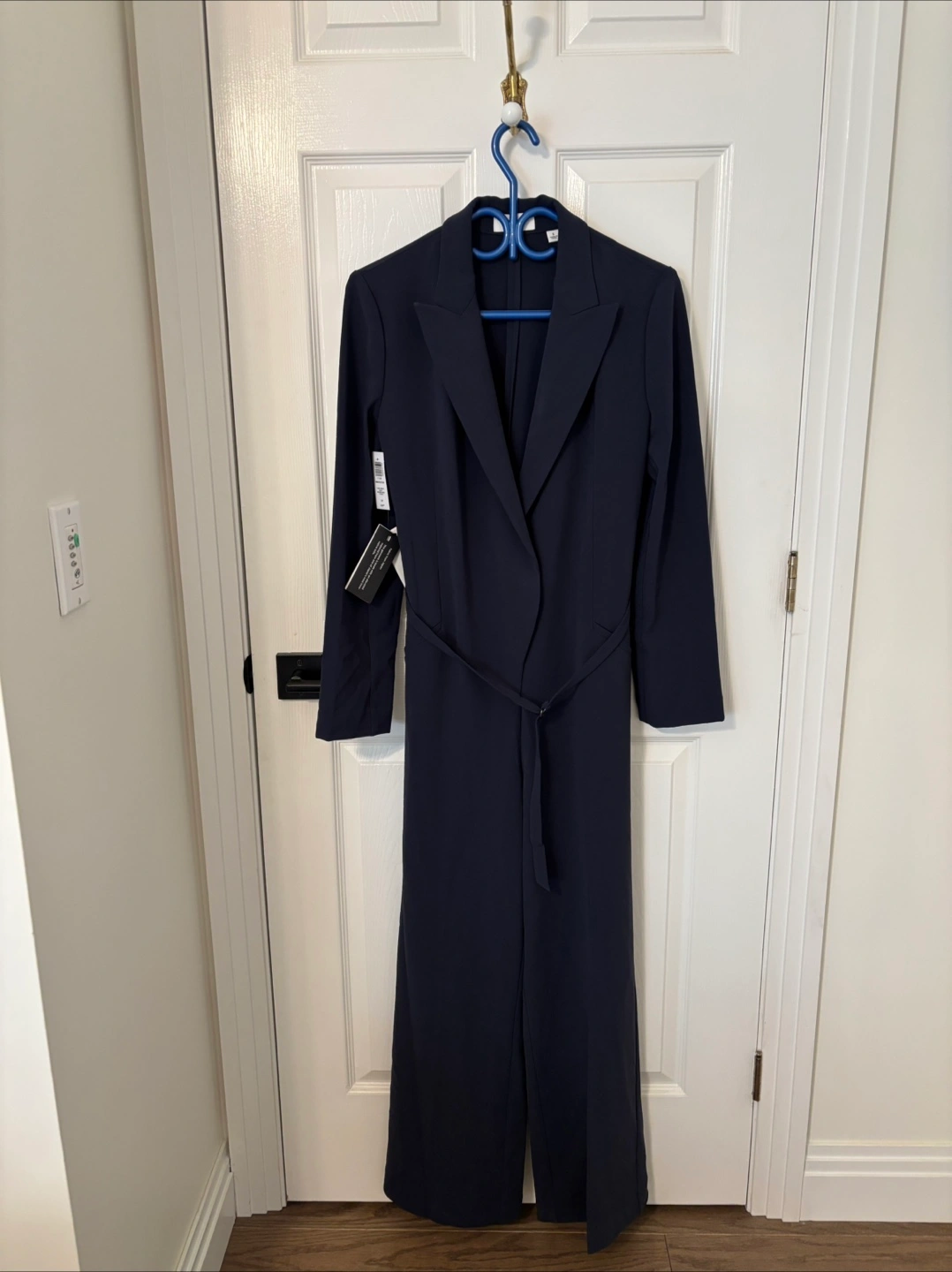 Selling a Saton Innovator jumpsuit in dark night navy. It's a size small/petite. The fabric is from Japan and made with an elevated material from one of Japan's most innovative mills. Originally bought for $228