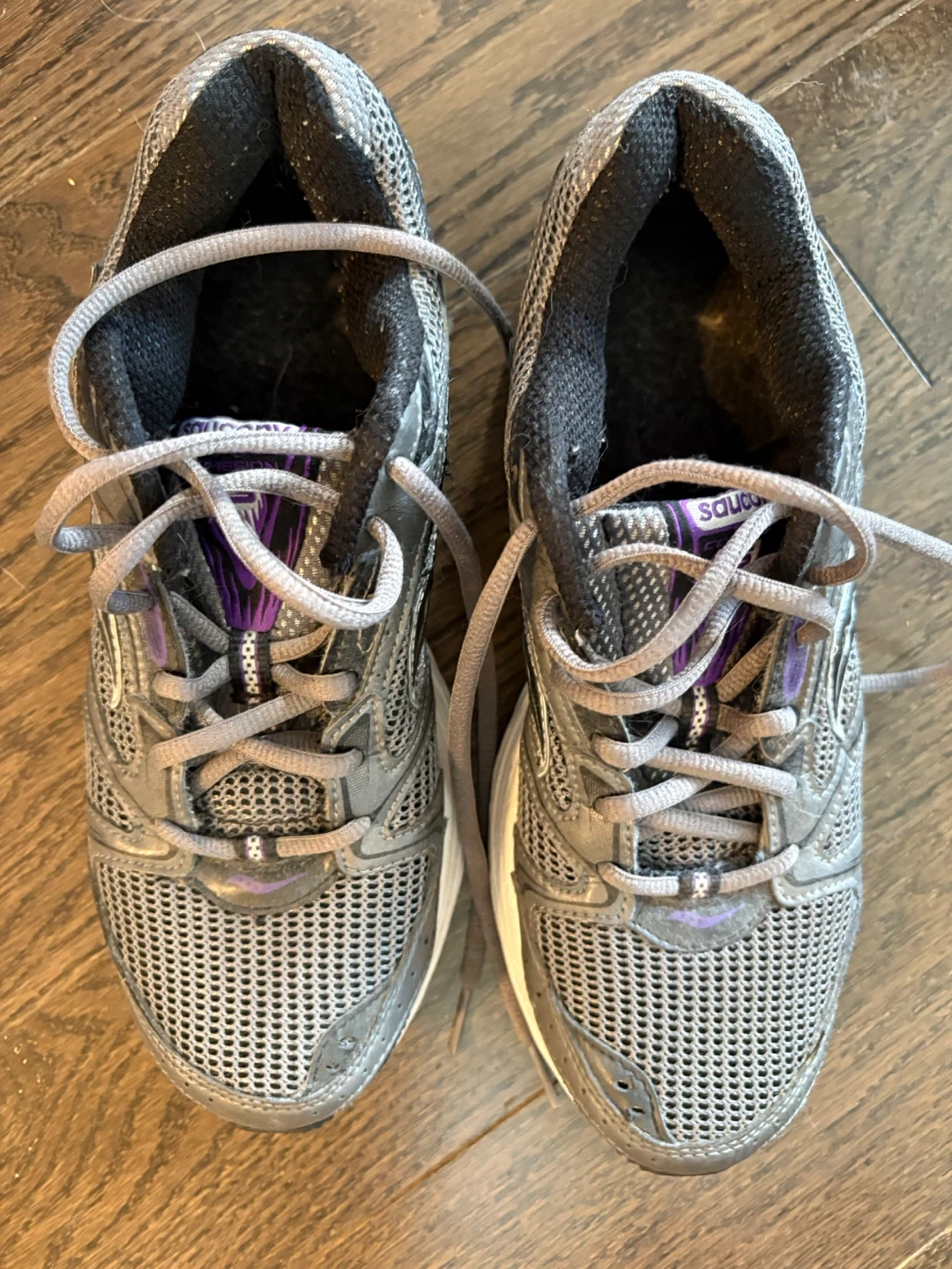 Selling a pair of Saucony Cohesion running shoes. They're a stylish grey and purple colour. Great for running or everyday wear! Please see photos for condition.