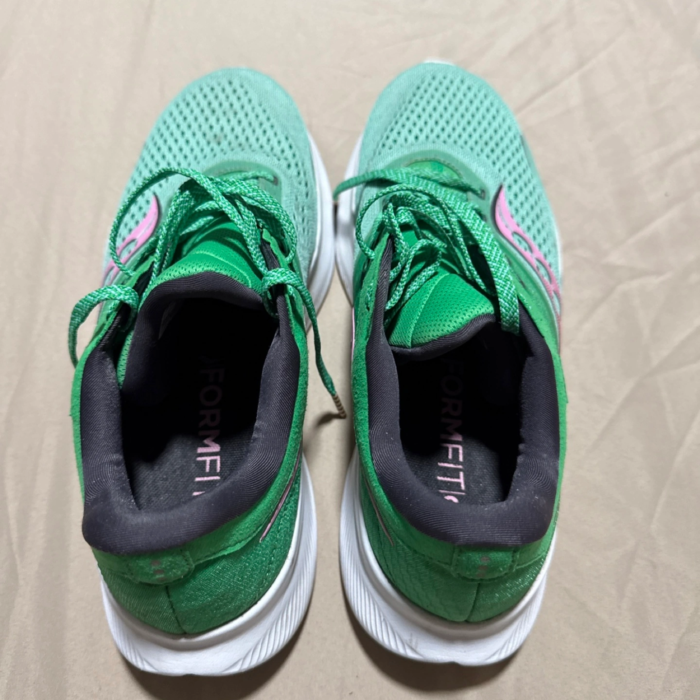 Selling a pair of Saucony Guide 16 running shoes in a vibrant green color! They feature PWRRUN technology for a comfortable and responsive ride. The size is US 9w. These are perfect for your next run! Like new. Worn once.