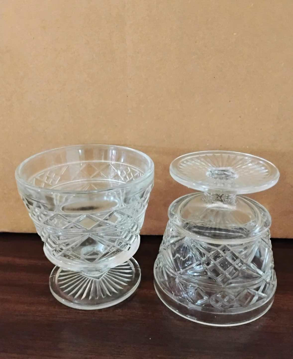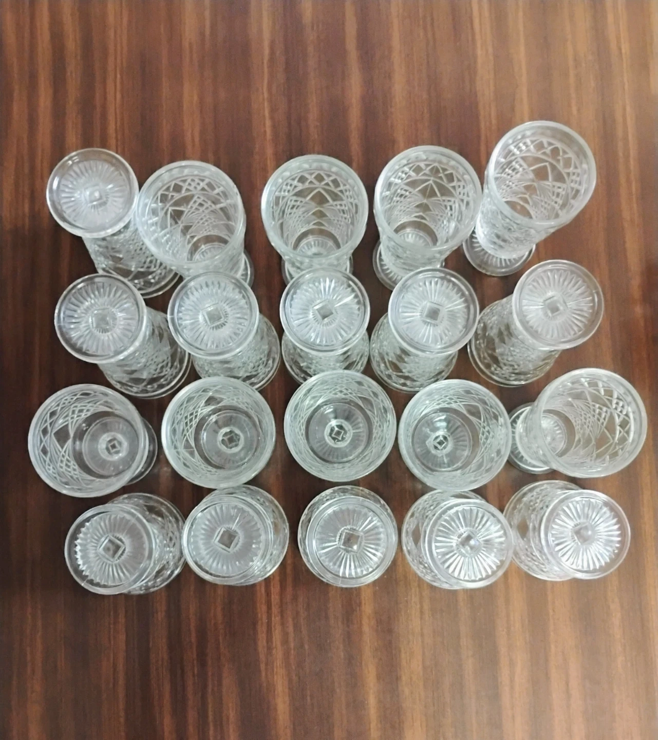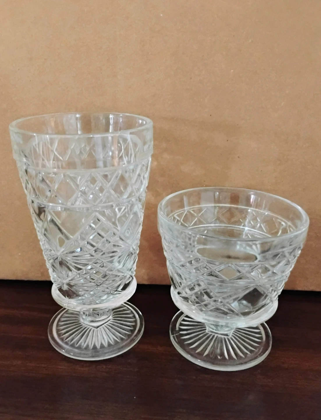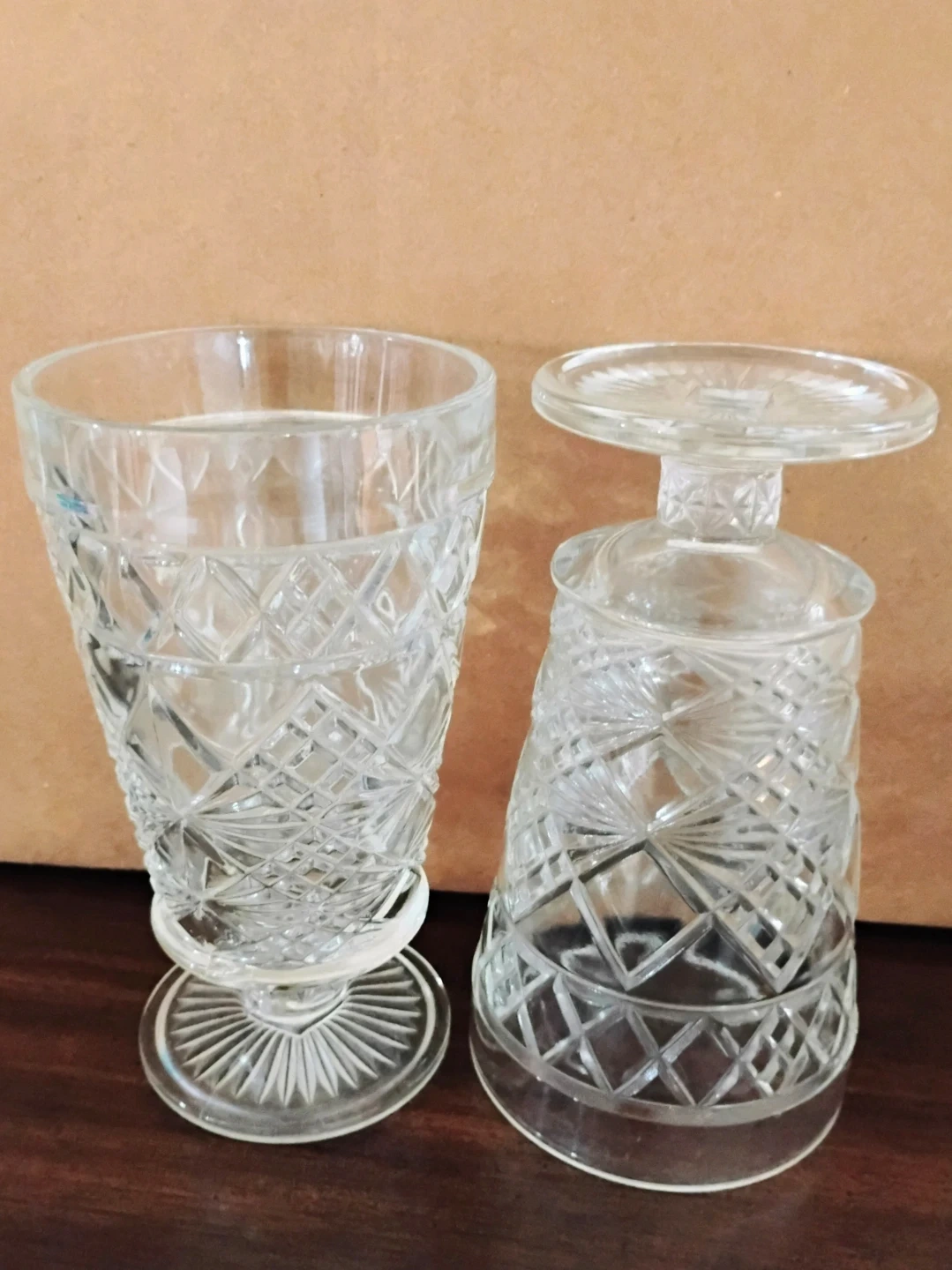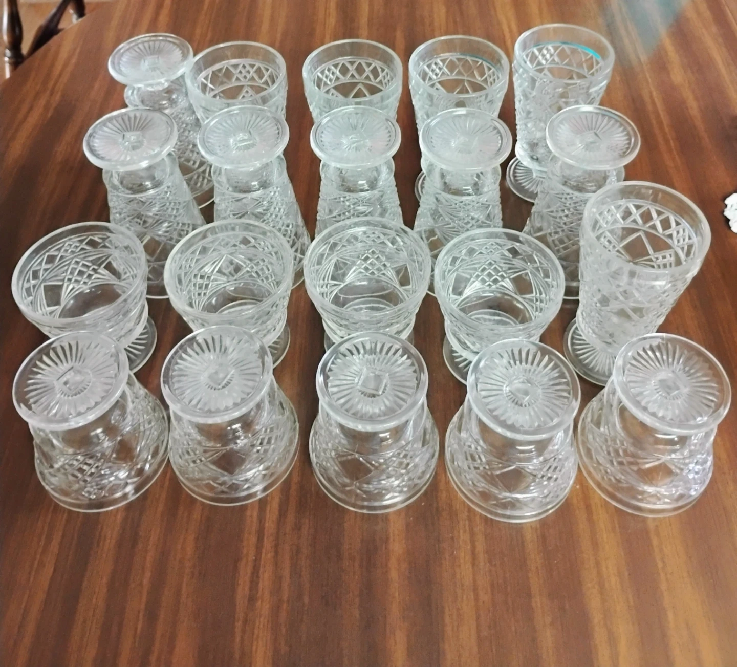 Lot of 20 pressed glass, pedestal peanut butter glasses.