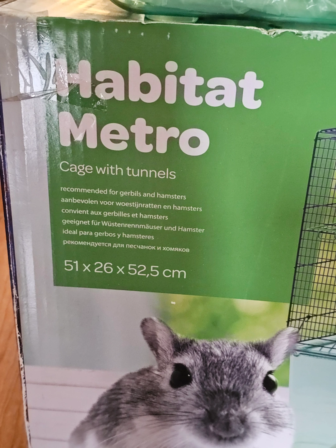 Savic Habitat Metro cage with tunnels. Suitable for hamsters and gerbils. Includes multiple levels and accessories. Good condition. Dimensions: 51 x 26 x 52.5 cm.. Brand new.. came with crack that has been repaired
