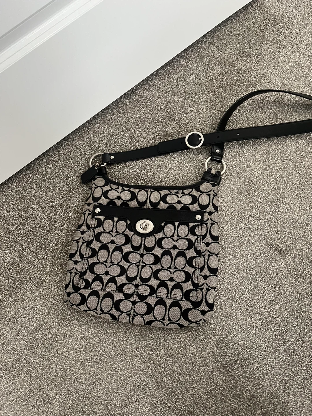 Cute Coach crossbody bag with the signature "C" design! It's in great condition and has an adjustable strap. The interior is a lovely lavender colour. Perfect for everyday use! Pick up from smoke and pet free home in SE.