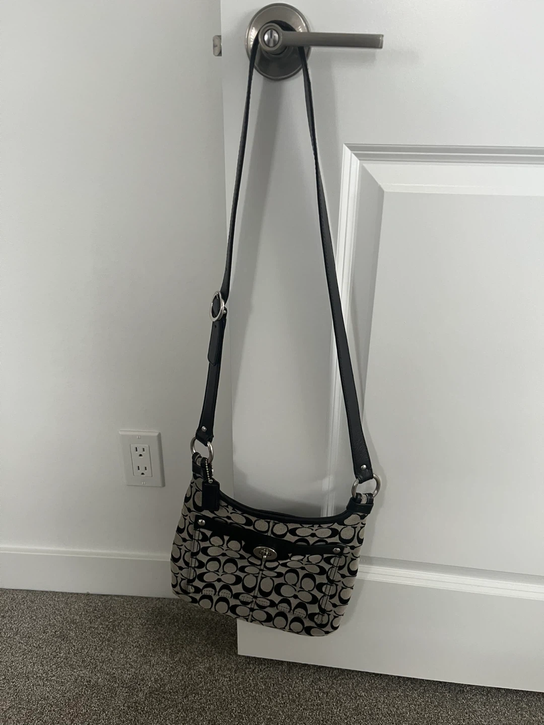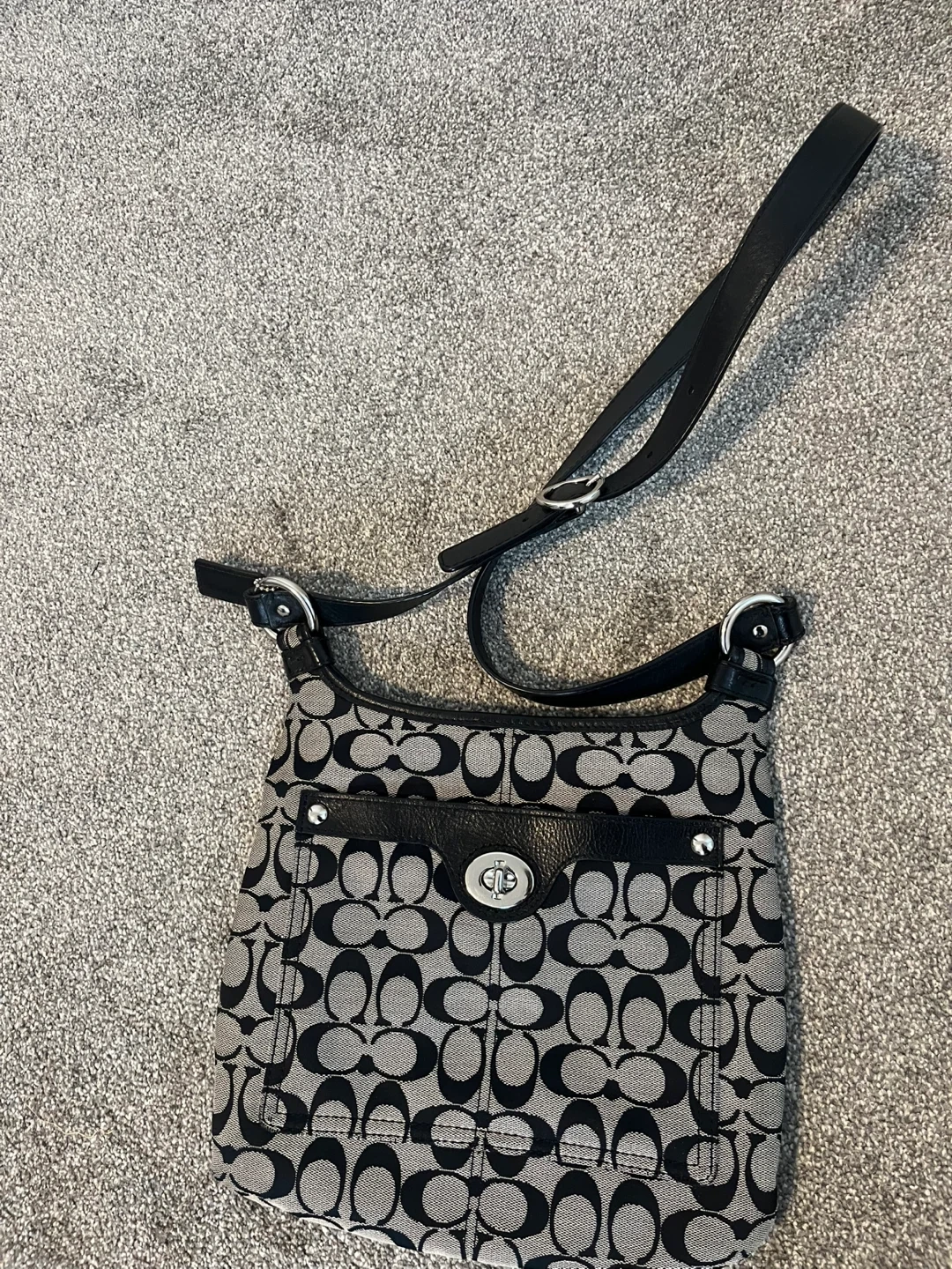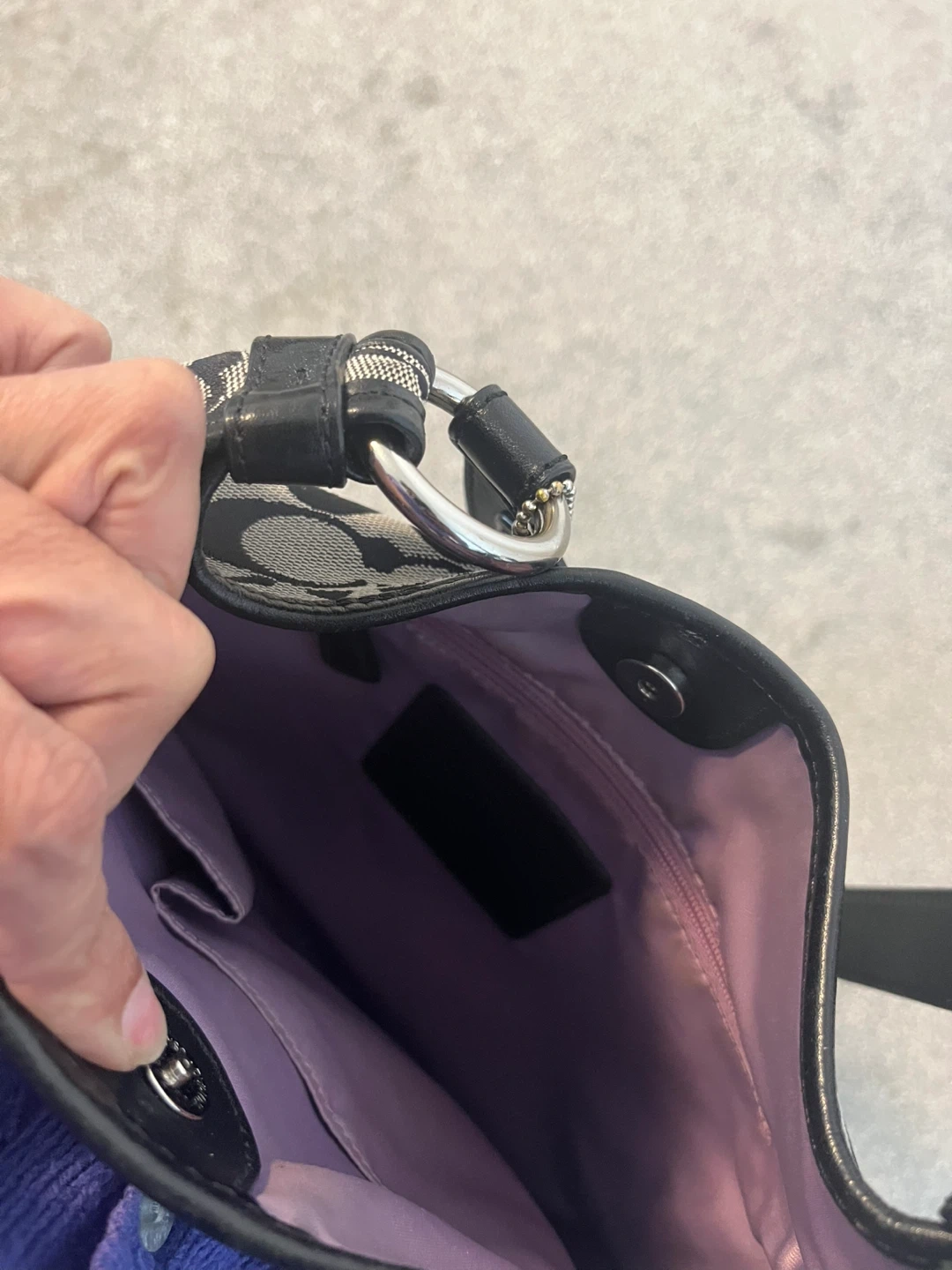Cute Coach crossbody bag with the signature "C" design! It's in great condition and has an adjustable strap. The interior is a lovely lavender colour. Perfect for everyday use! Pick up from smoke and pet free home in SE.