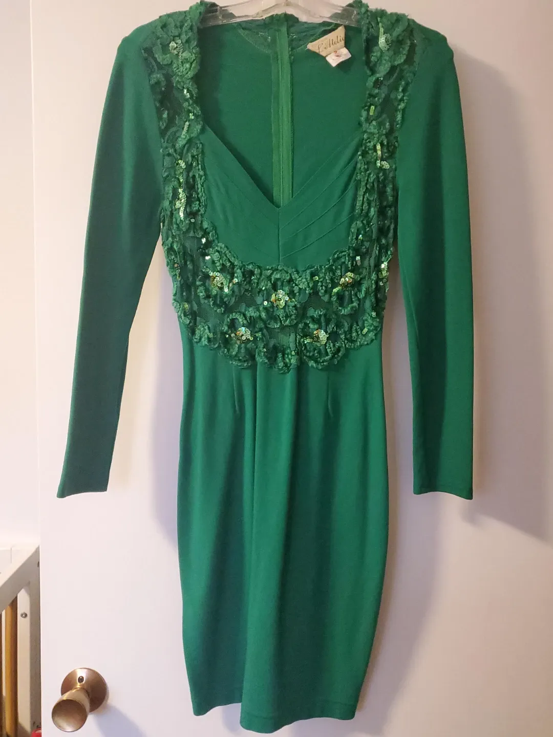 Beautiful green dress from L'Atelier. It has long sleeves and lovely detailing around the neckline. It's in great condition and ready for a new owner!