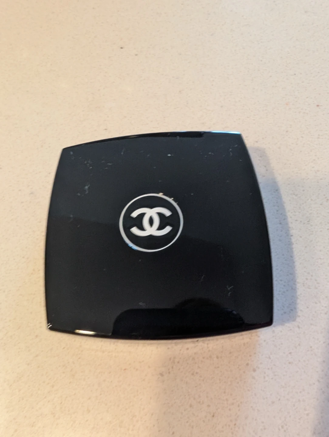 Used once Chanel eyeshadow palette features four complementary shades. It includes a protective pouch. The shades appear to be a mix of shimmery finishes. Originally priced at 115+tax