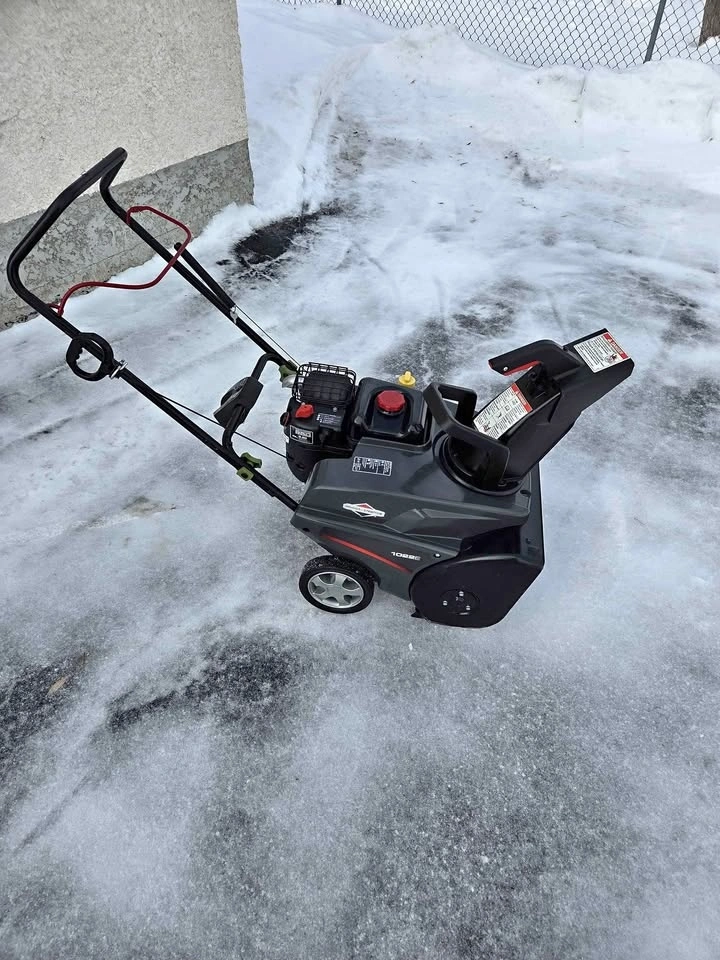 Briggs & Stratton Single Stage Snowblower with a 208cc, 4-stroke Briggs & Stratton Engine. Features electric start and a 22" cut. In nice shape and has been serviced, ready for snow. Asking $675.00 O.B.O.