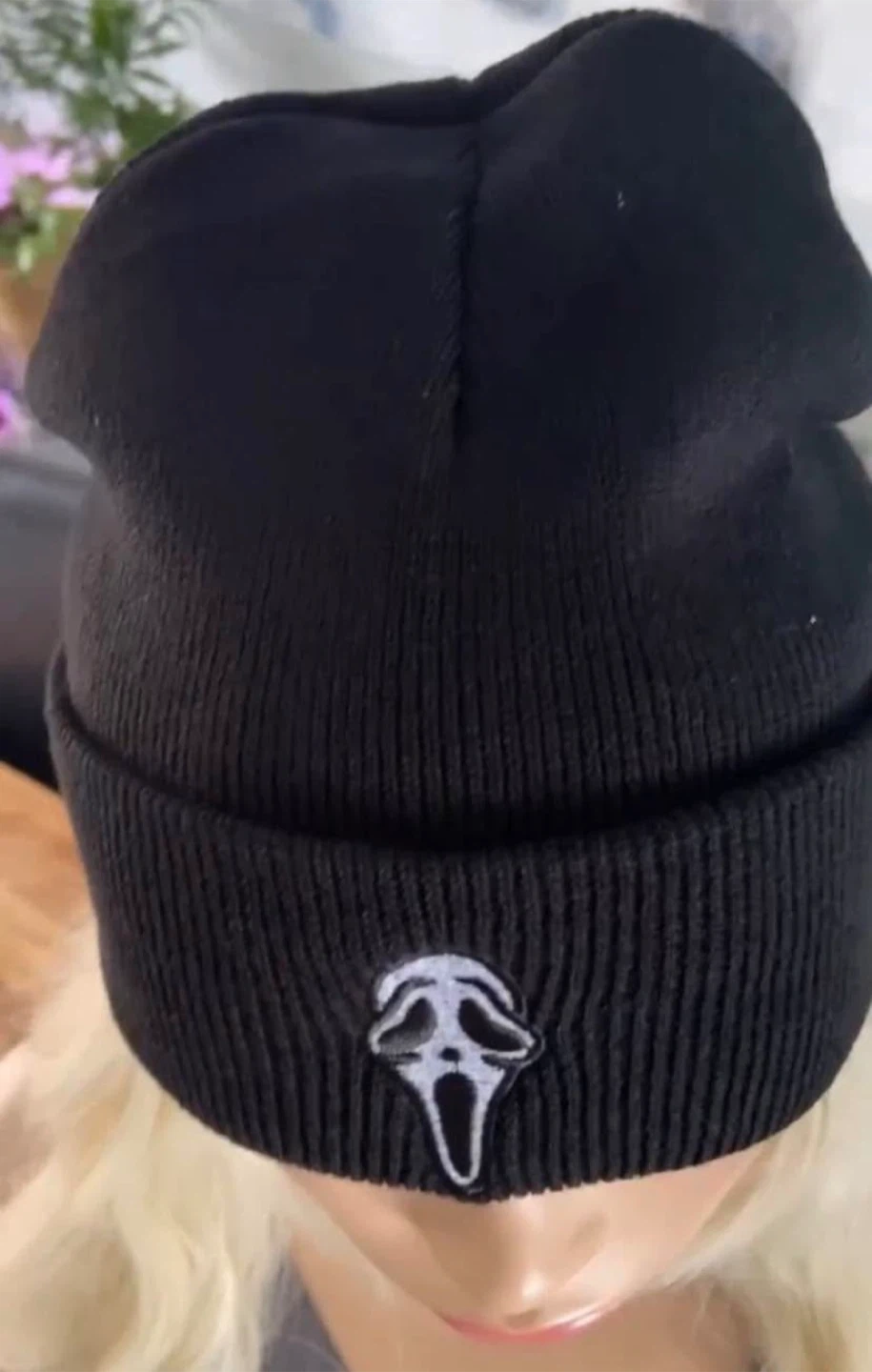 Brand new, never worn, from smoke-free home. Black beanie hat with embroidered Scream Ghostface. One size. Pick up in the north end of St. Catharines.
