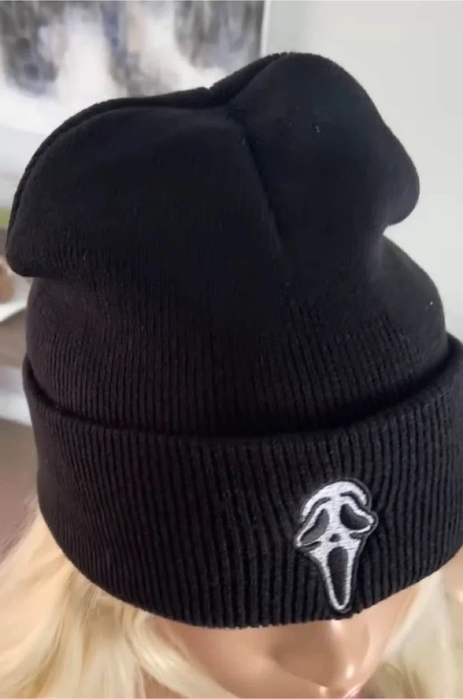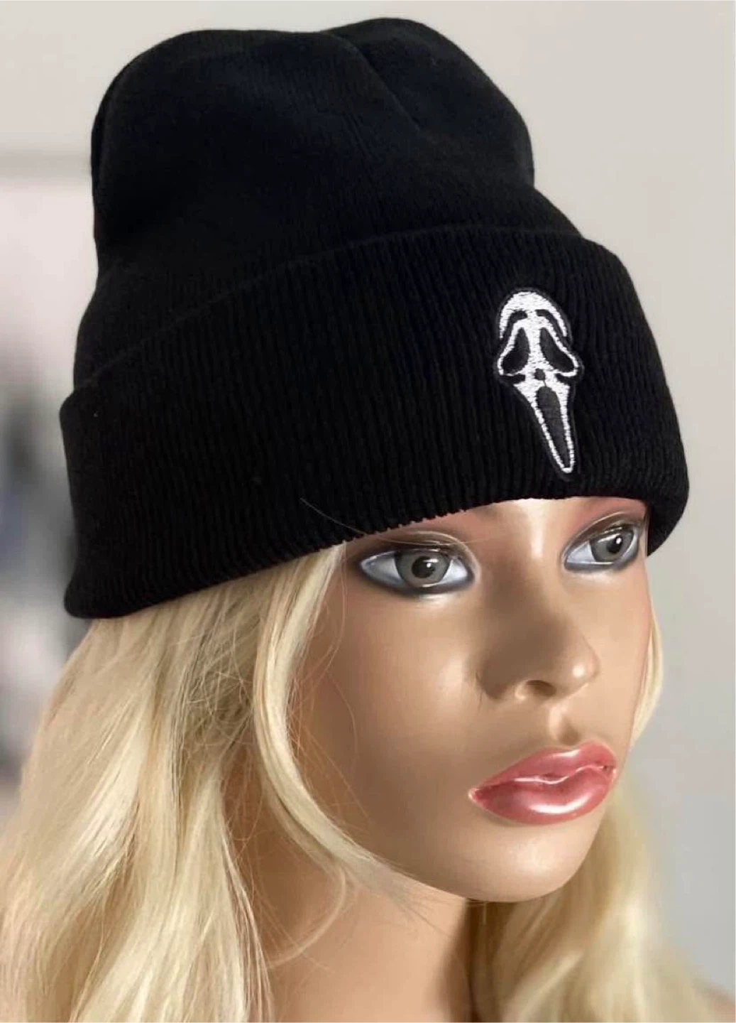 Brand new, never worn, from smoke-free home. Black beanie hat with embroidered Scream Ghostface. One size. Pick up in the north end of St. Catharines.