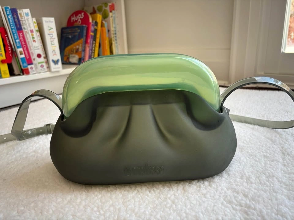 Brand new with tag Melissa jelly glass bag! The Melissa Glass Bag blends style and originality. Made from PVC, it features a contemporary design with fluid contours and a strap that evokes a bubble glass effect, adding a unique charm. Perfect for everyday use, it symbolizes elegance and personality, making it the ideal bag to help you stand out. Easy-to-clean, wear-resistant PVC. Magnetic closure for secure storage. Adjustable cross-body strap with pin closure. 96% PVC + 4% metal. Bubblegum scent.