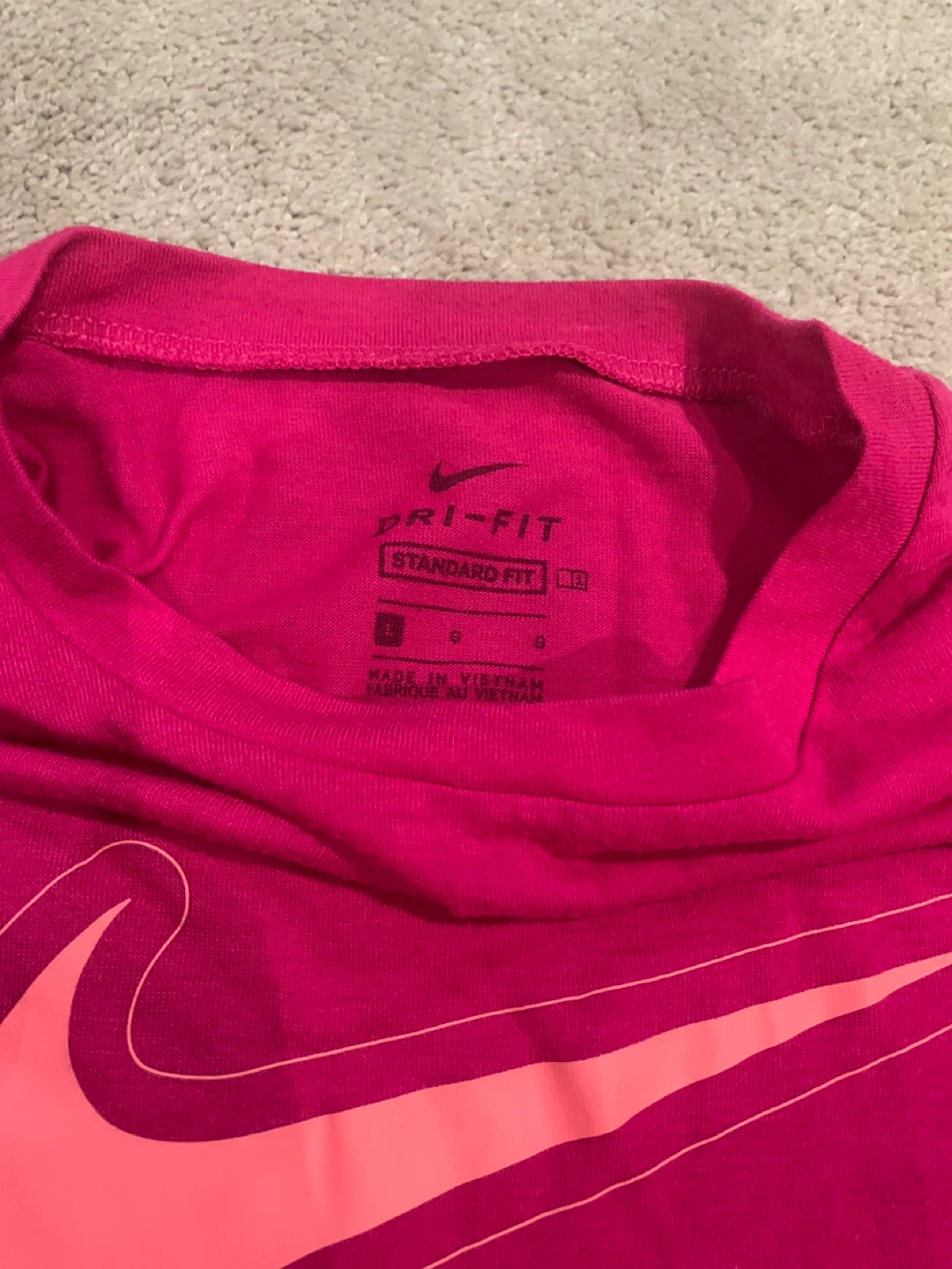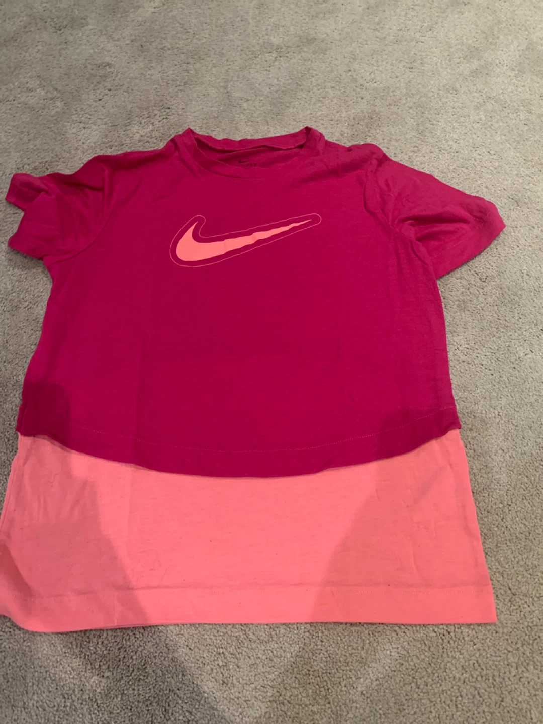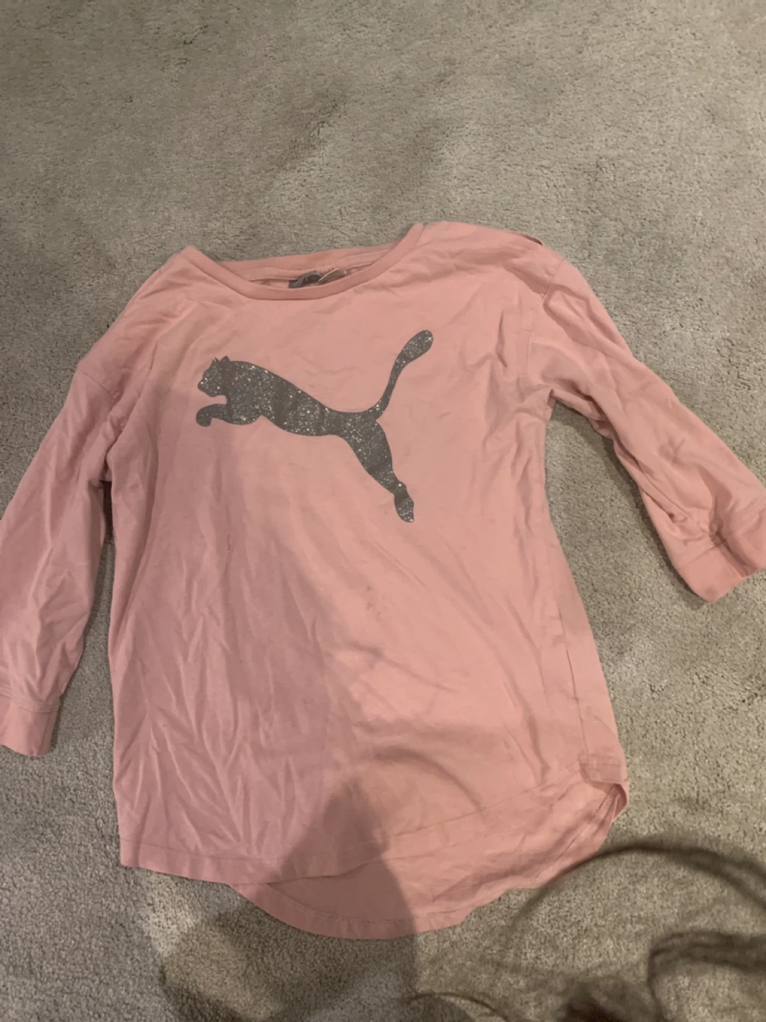 Bundle of three girls' t-shirts featuring Adidas, Nike Dri-Fit, and Puma. Sizes are XL for Adidas and L for Nike and Puma. Great for active kids!