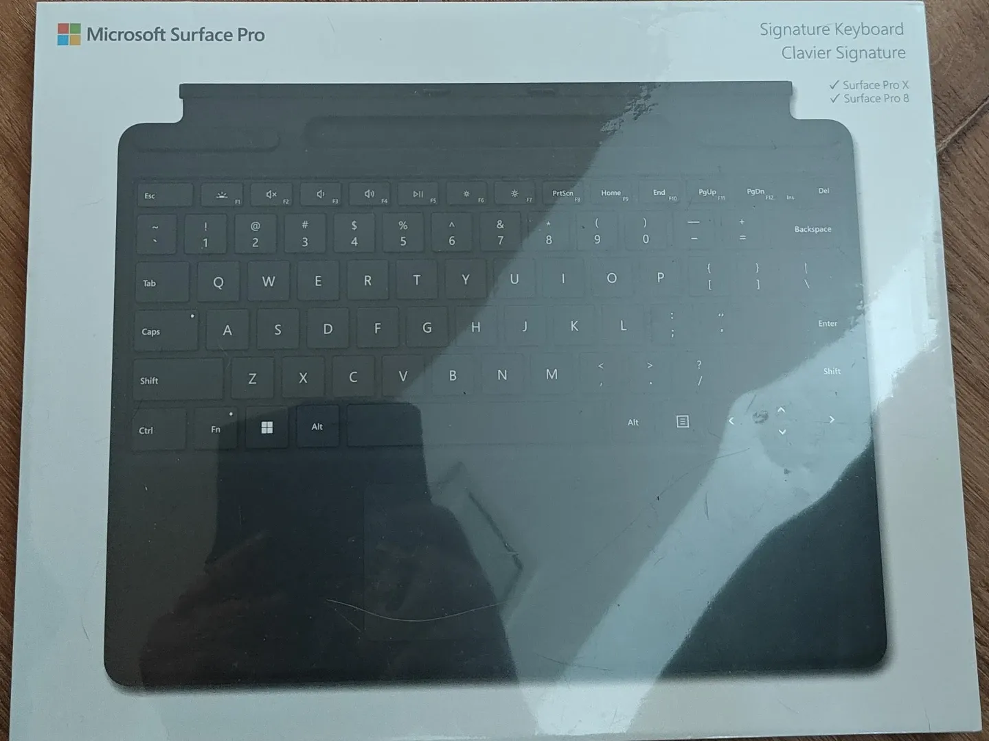 This is a Microsoft Signature Keyboard designed for the Surface Pro X and Surface Pro 8. It's a premium typing experience with a full QWERTY layout. It attaches magnetically for easy use.