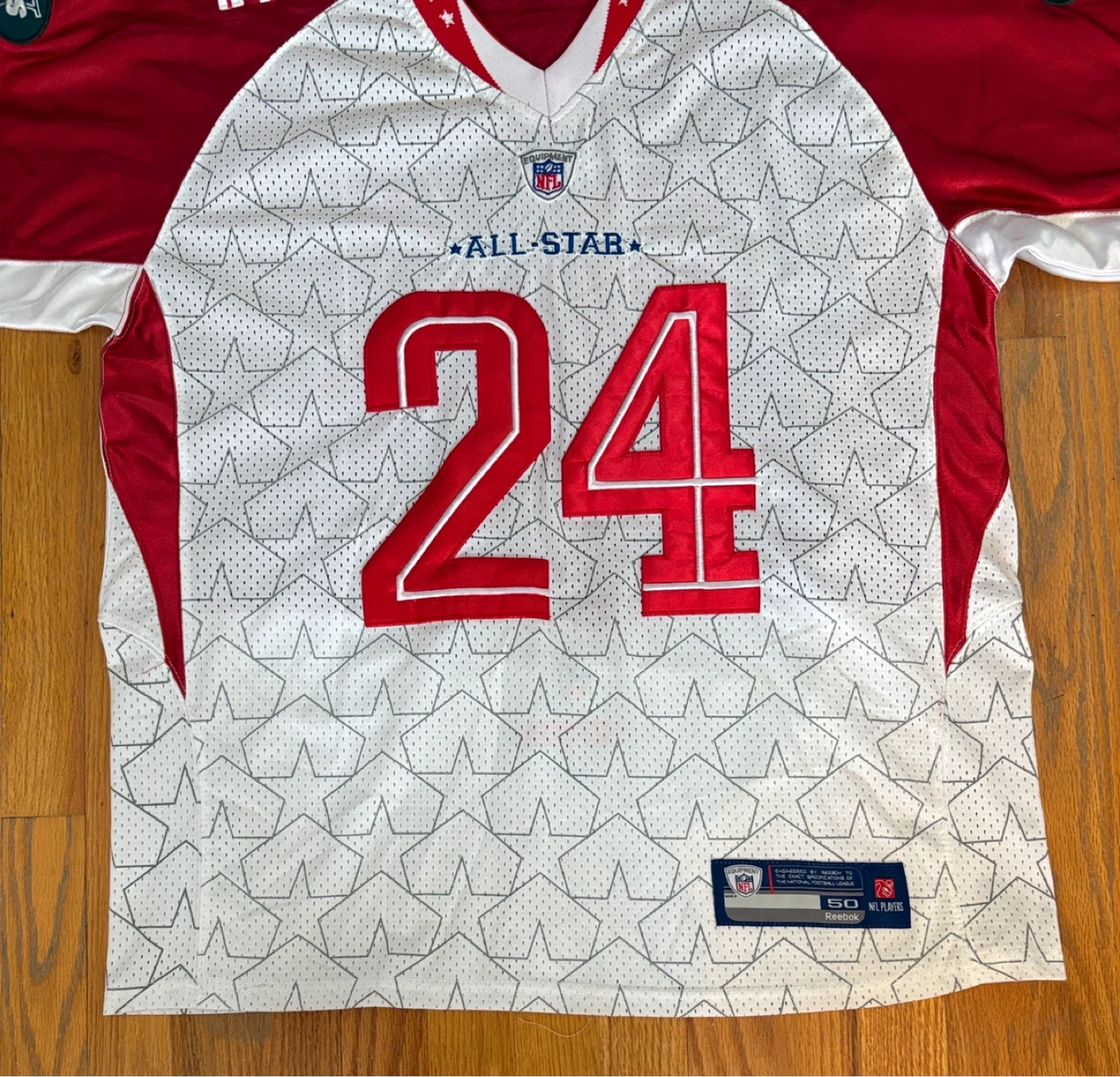 This Reebok NFL All-Star jersey features the number "24" Revis prominently displayed. The jersey includes "ALL-STAR" text above the number.