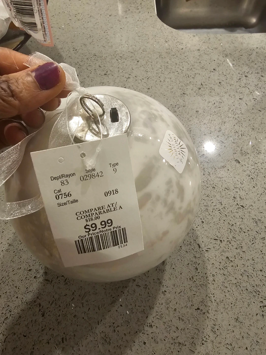 Buy & SellWhite Christmas Ornament - NewWhite Christmas Ornament - New$5Selling a new white Christmas ornament. The tag says it is style 029842 and type 9. It was originally priced at $9.99 and comparable at $18.00ConditionLike newWHERE TO MEETCheck LocationView MapSELLERverifiedJebbehSouthwest Edmonton600 reviews0 chats·0 favorites·21 viewsSEND CHAT TO SELLERHi Jebbeh! I’m interested in your listing.Hi Jebbeh! I’m interested in your listing.Get the Karrot app to chatSign In to chat