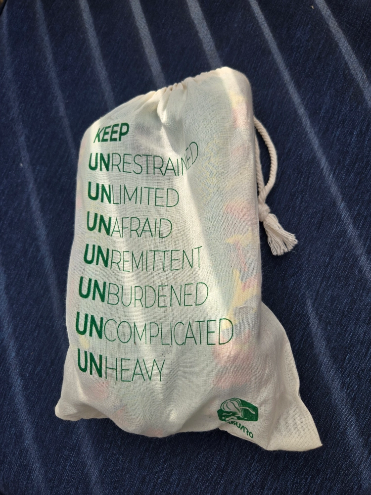 These aqua-coloured shoes are a size 45, which is approximately a US size 11. They come with a handy carrying bag.