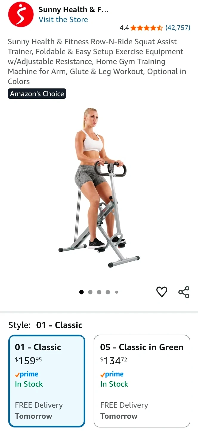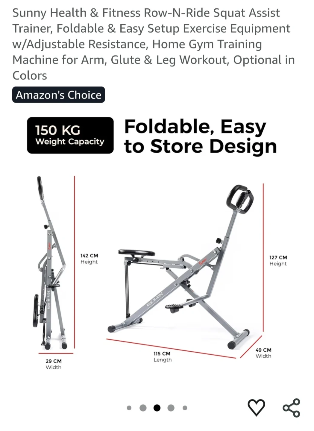 Sunny Health & Fitness Row-N-Ride Squat Assist Trainer, Foldable & Easy Setup Exercise Equipment w/Adjustable Resistance, Home Gym Training Machine for Arm, Glute & Leg Workout.