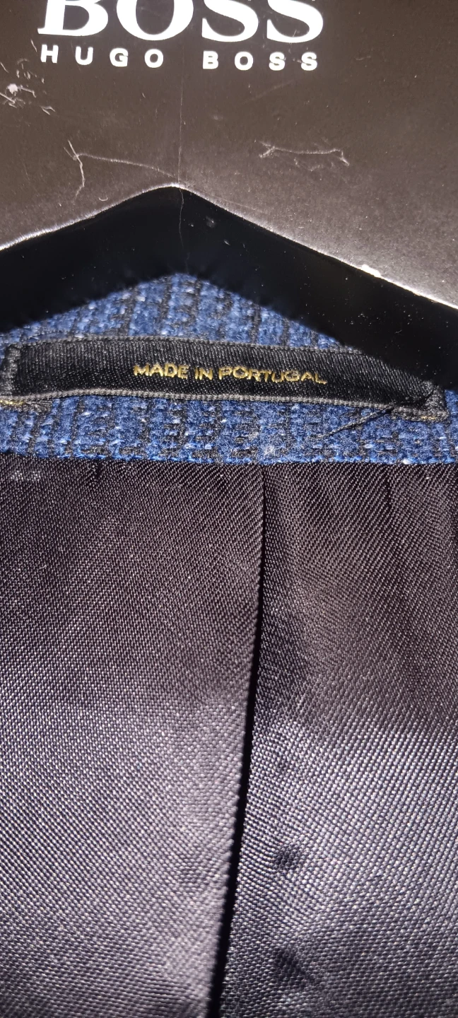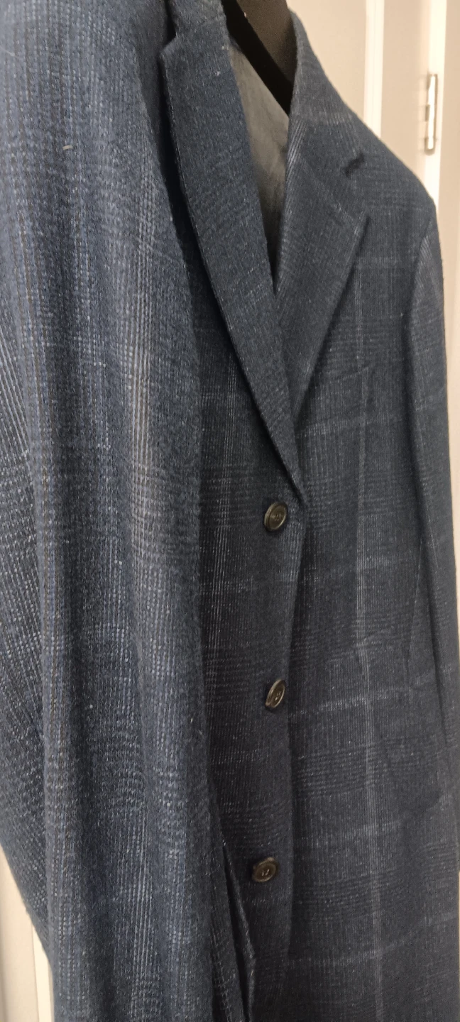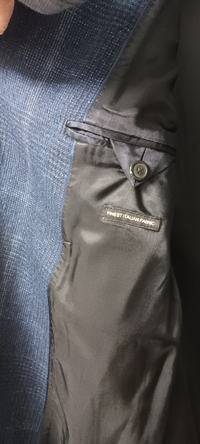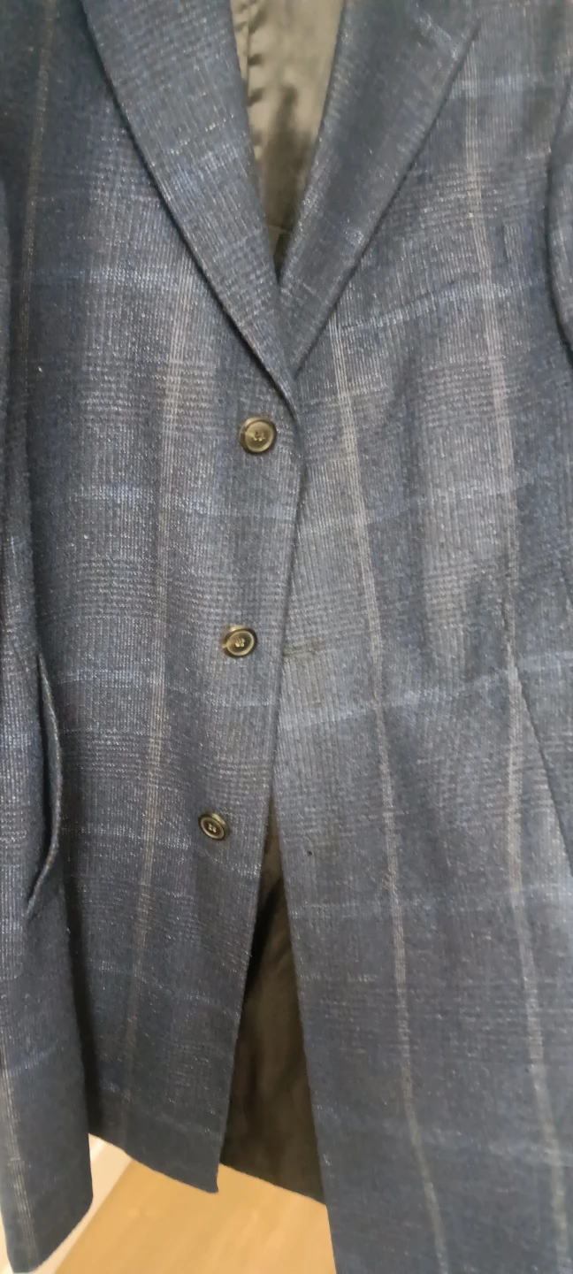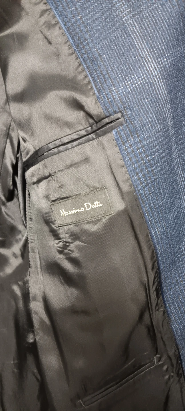 A handsome navy plaid blazer by Massimo Dutti. It's made with a wool blend fabric and features a classic notched lapel with three button closure. Fully lined interior with pockets.