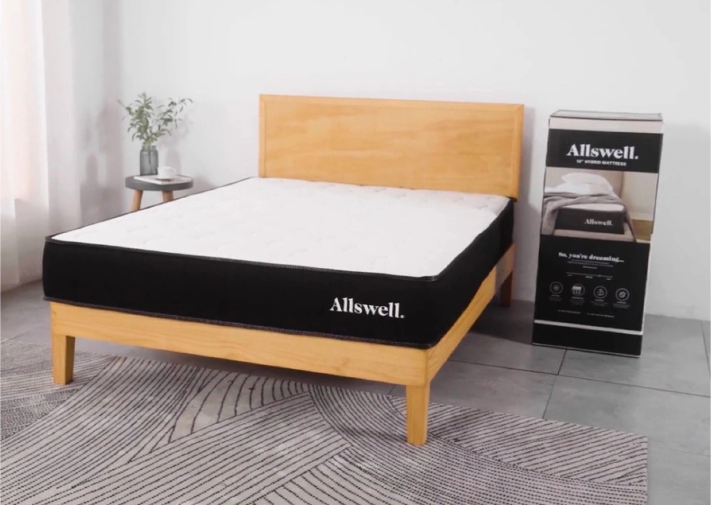 The mattress is TheAllswell 10” hybrid gel memory foam. Great condition with less than 1 year of use.