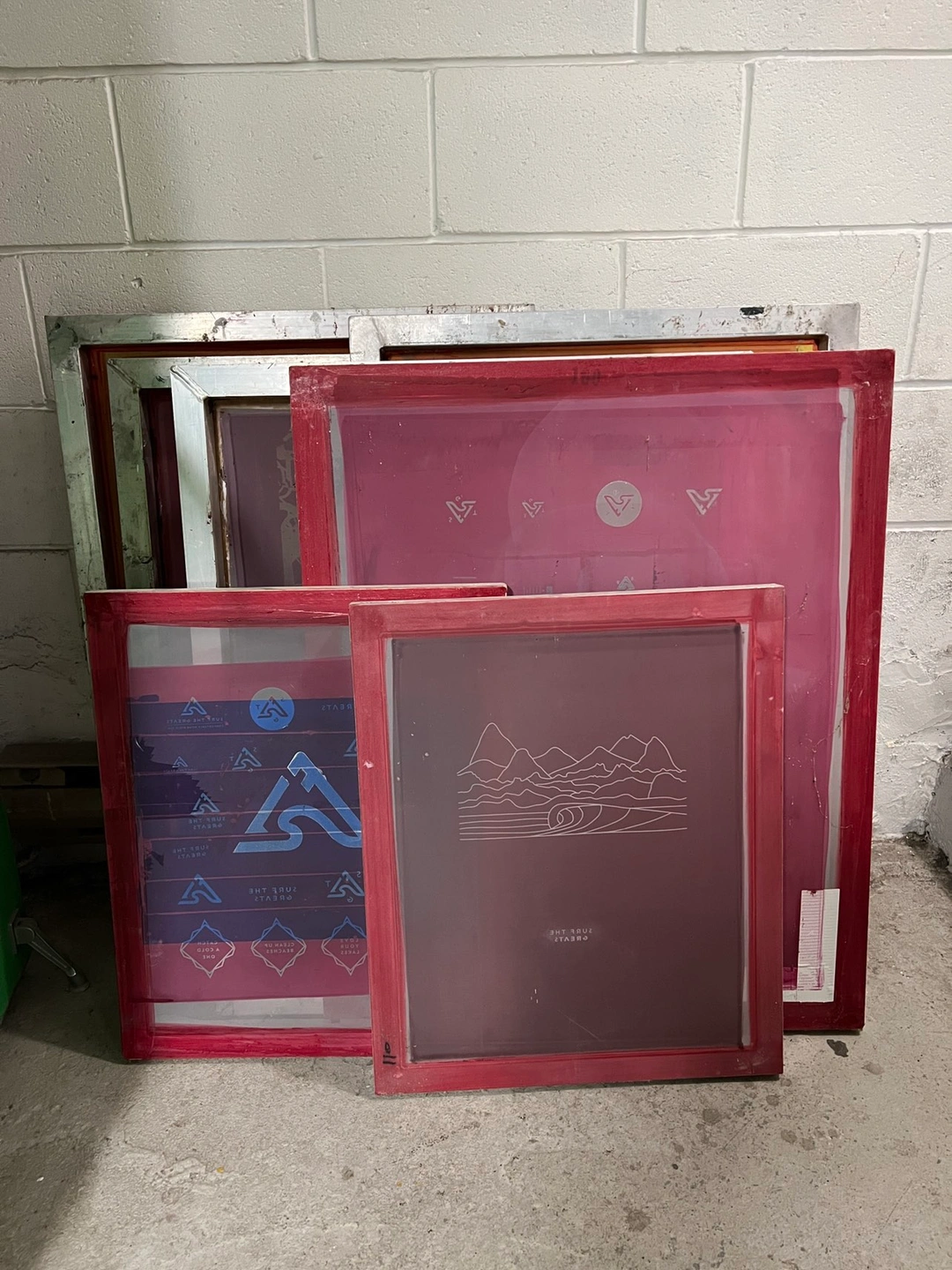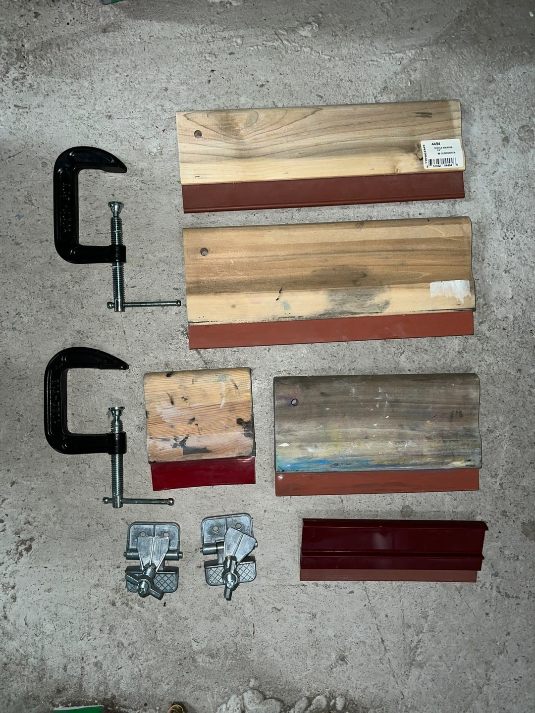 Selling 7 screens, several squeegees, clamps and old paint.