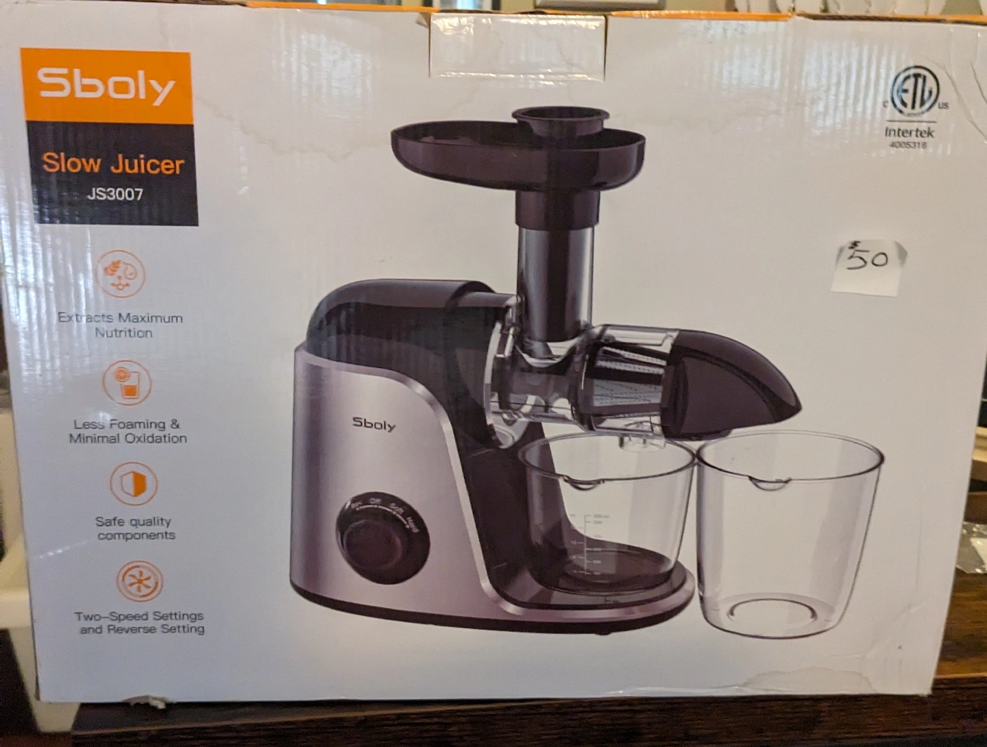 Brand new in box - Never used!! Selling a Sboly Slow Juicer, model JS3007! It extracts maximum nutrition and offers two-speed settings with a reverse setting. It also provides a more serene juicing experience with reduced noise. Key features include: - Extracts Maximum Nutrition - Two-Speed Settings and Reverse Setting - Reduced Noise - Less Foaming & Minimal Oxidation - Easy to Clean - Safe quality components It comes with the user manual and is in its original box