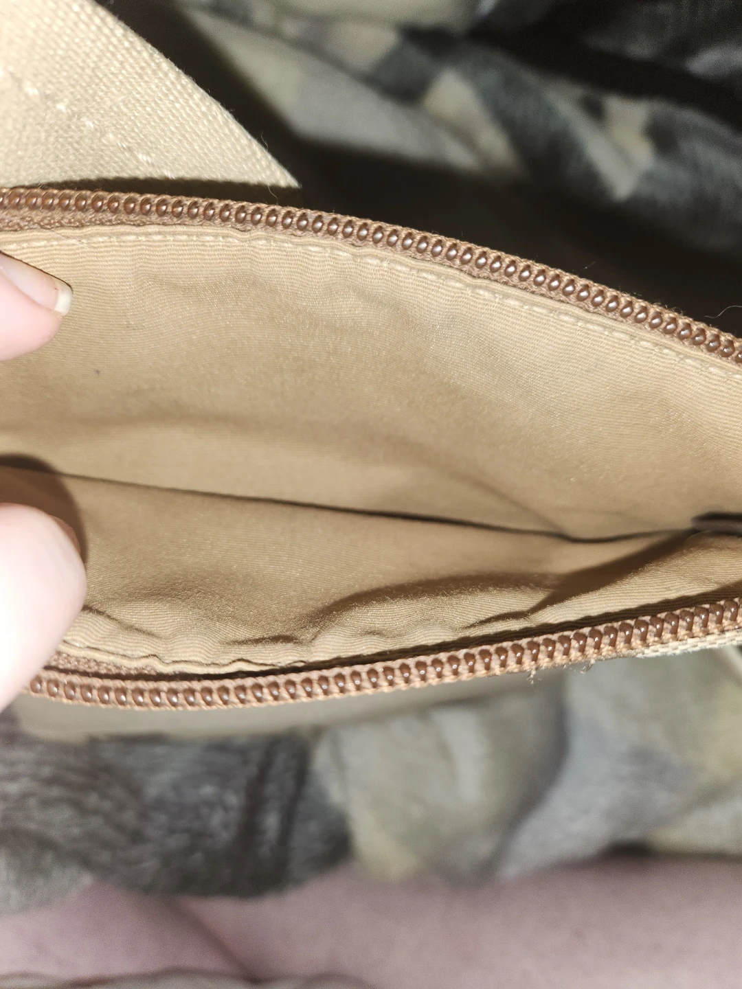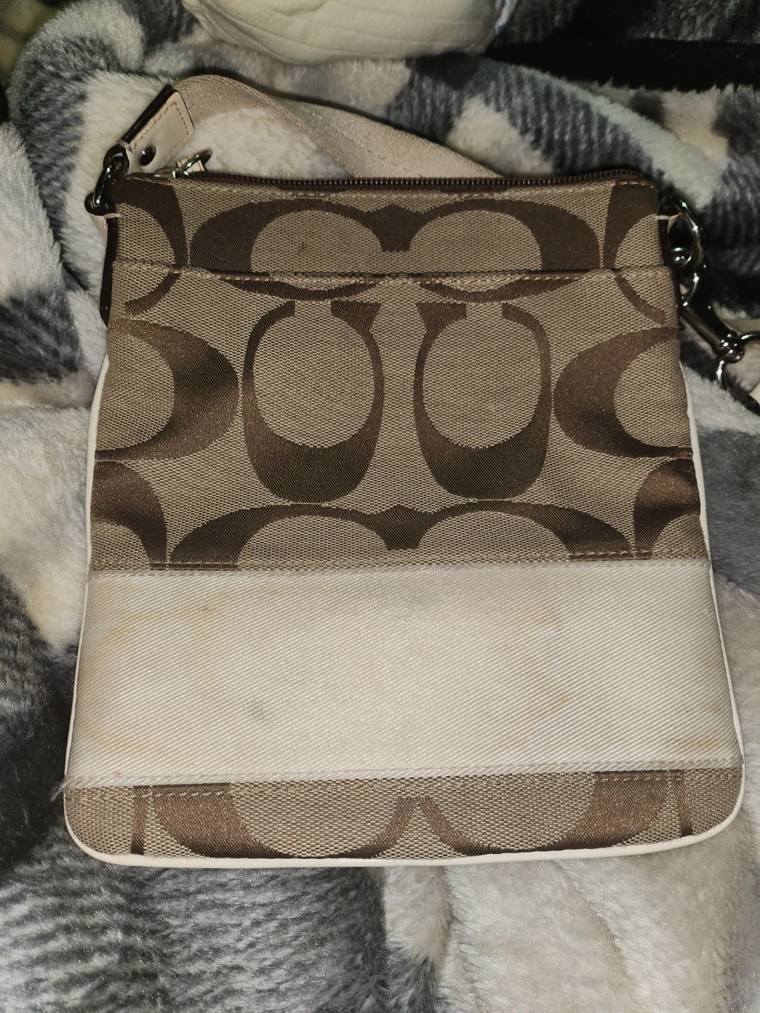 Purse needs a good cleaning on the outside, inside looks good. Has adjustable strap, zipper closure with two pockets. 99% it's not a Coach because it lacks the Coach stamp. (I have several authentic bags, no expert but I'm positive this is a knock off.)
