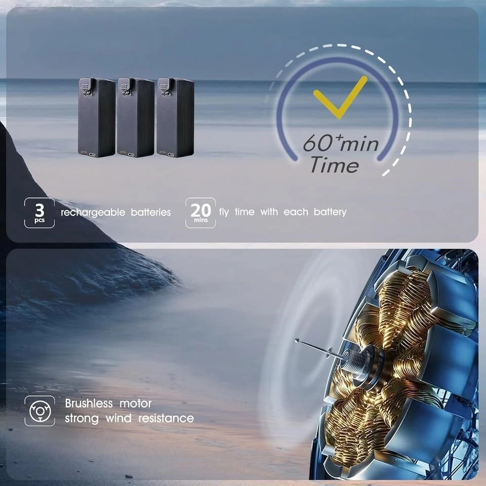 4K HD FPV Drone with Camera for Adults β 2650ft Long Range, 60+ Mins Flight, Foldable WiFi Quadcopter, Brushless Motor, Auto Hover & Follow Me Mode (3 Batteries Included)