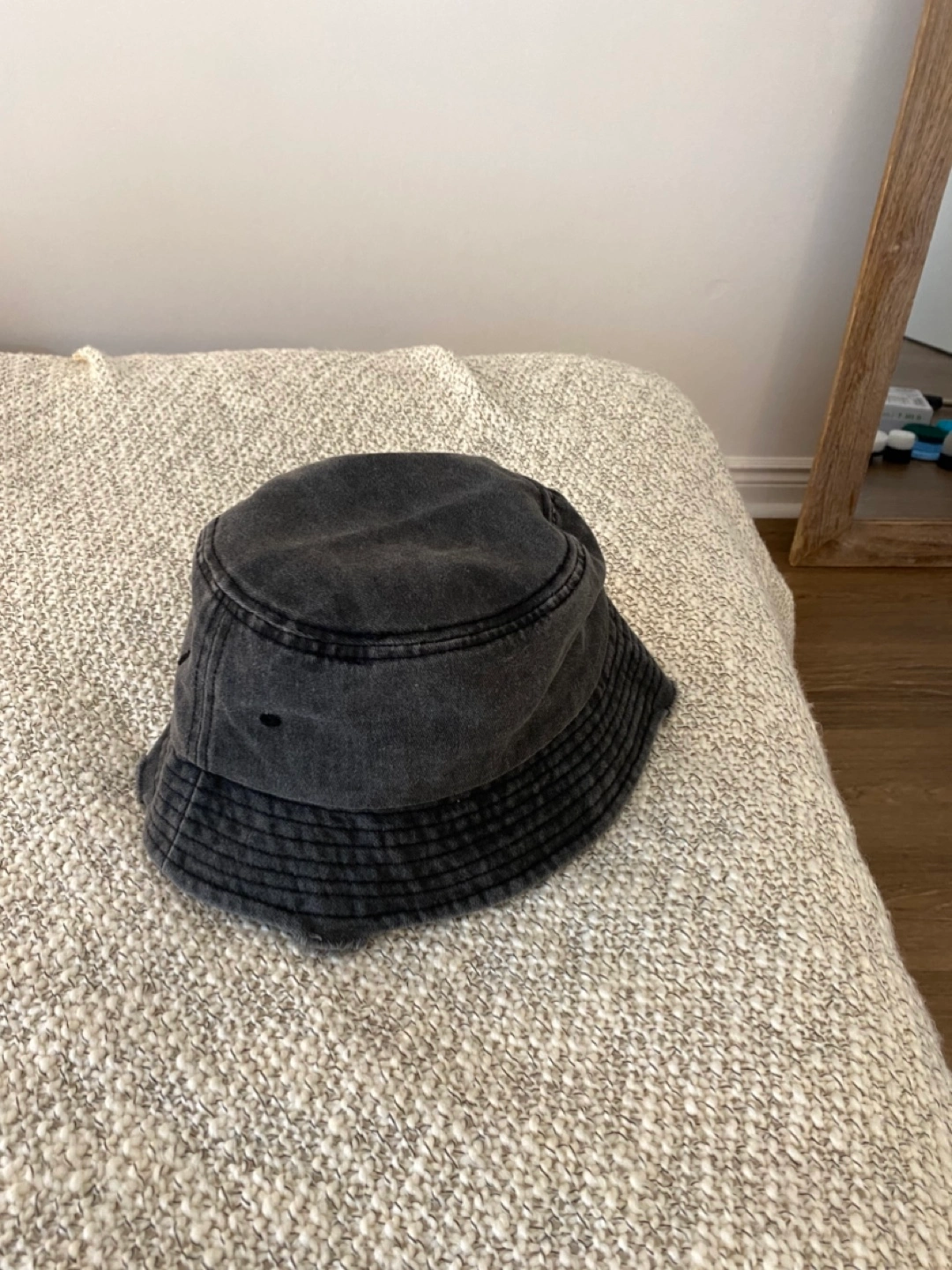 Ardene bucket hat! It's a stylish grey colour with distressed look. Purchased recently but it doesn’t suit me! Looking for a new owner :)