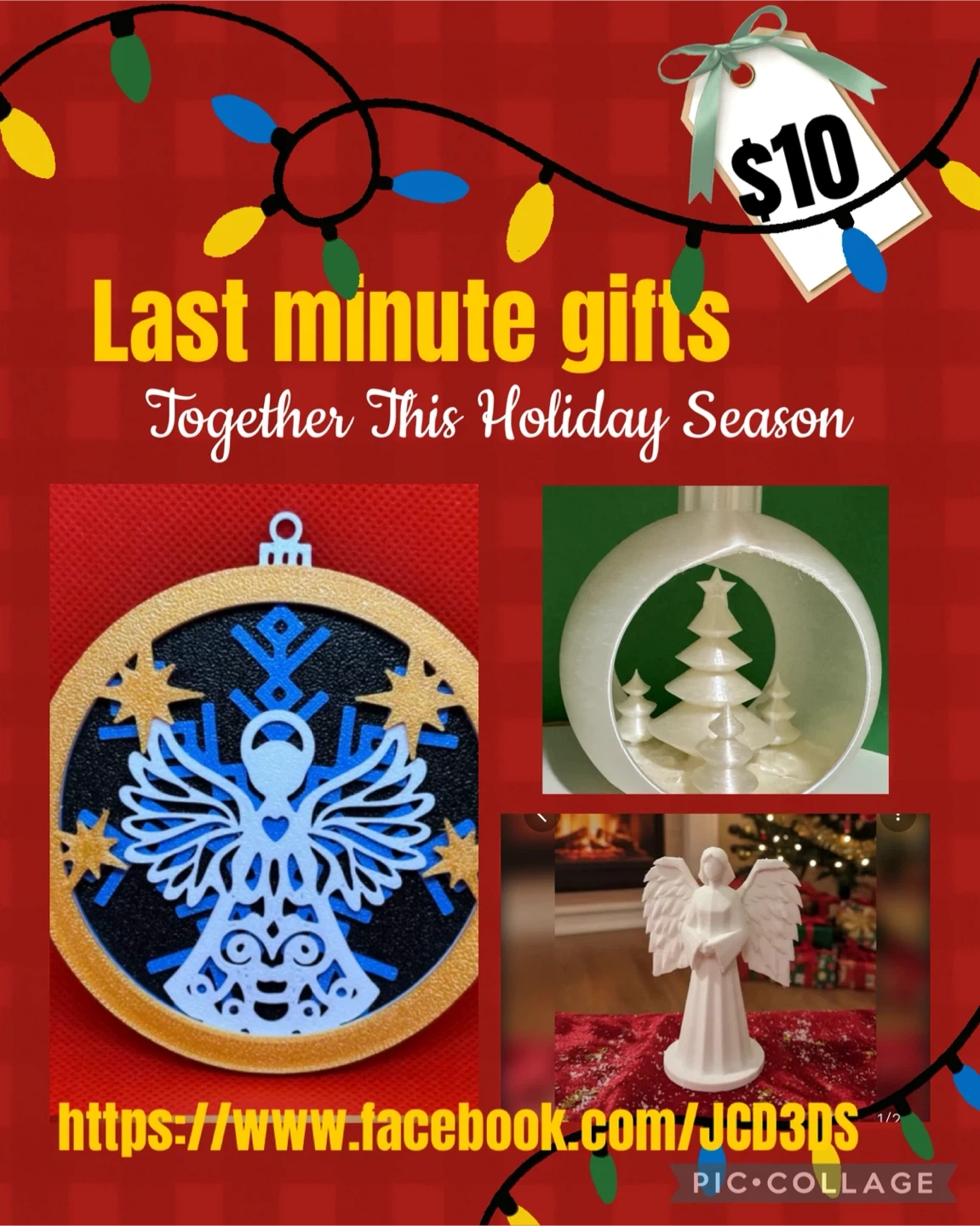 Selling a few 3D printed Christmas decorations, including ornaments and a small angel figurine.