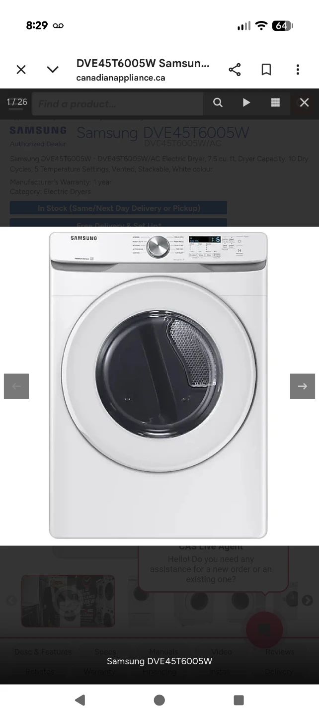 Selling my reliable Samsung dryer only because I recently purchased a new matching washer/dryer set. This unit is in 100% working condition and has been well-maintained in a clean home.