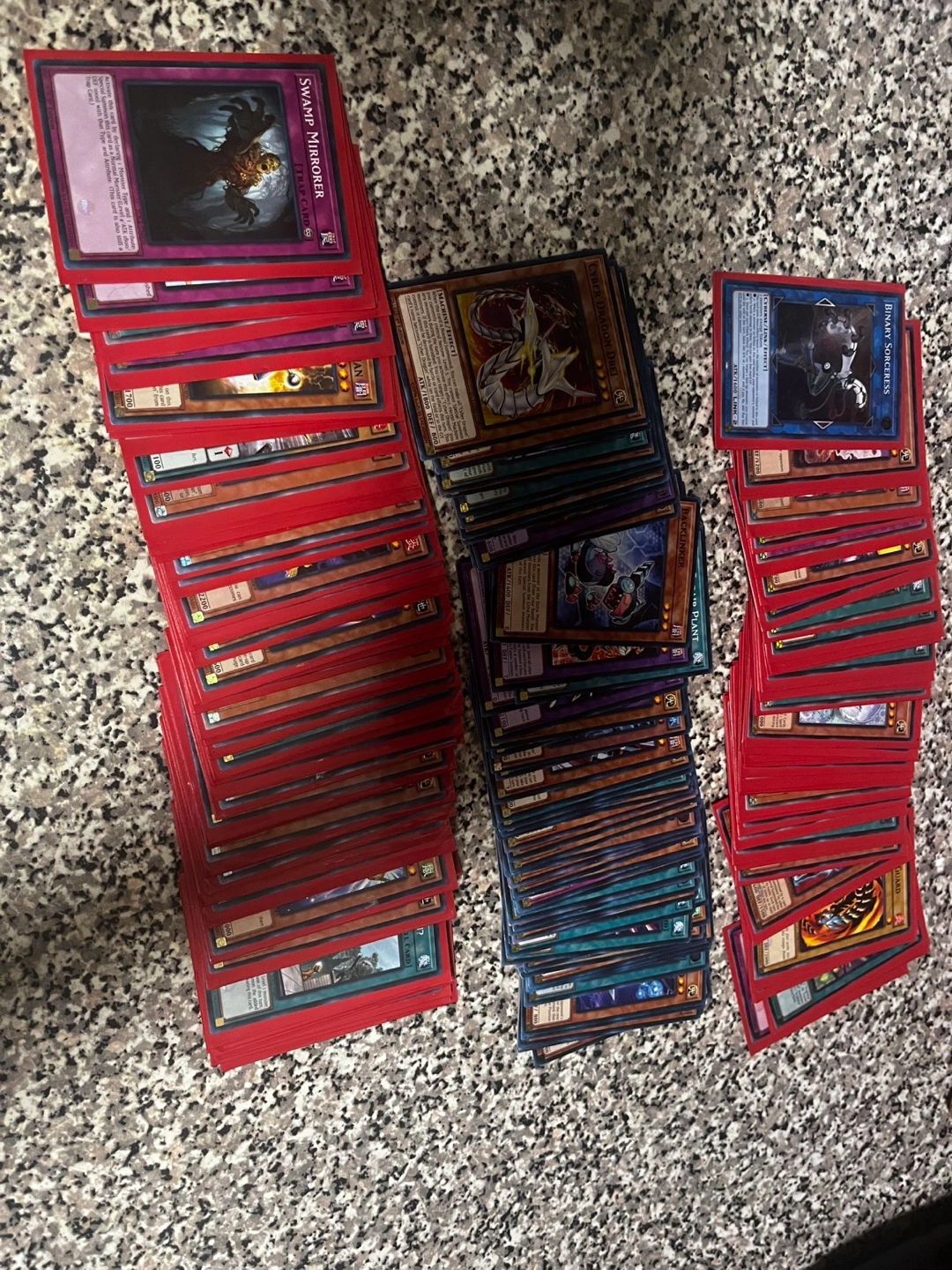 Large collection of Yu-Gi-Oh! trading cards. Many different cards. Great for players or collectors. Cards are used.