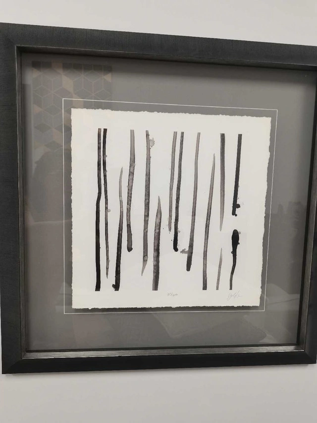 Add a touch of minimalist sophistication to your space with this framed abstract art piece, featuring black vertical brushstrokes on a white background. The artwork is professionally framed, ready to hang and enhance any room.