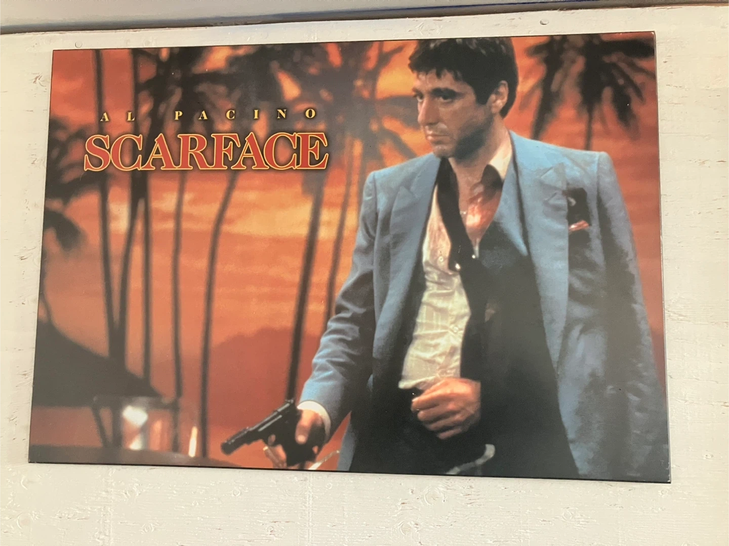 Selling a Scarface poster featuring Al Pacino. It's a great piece for any movie fan!
