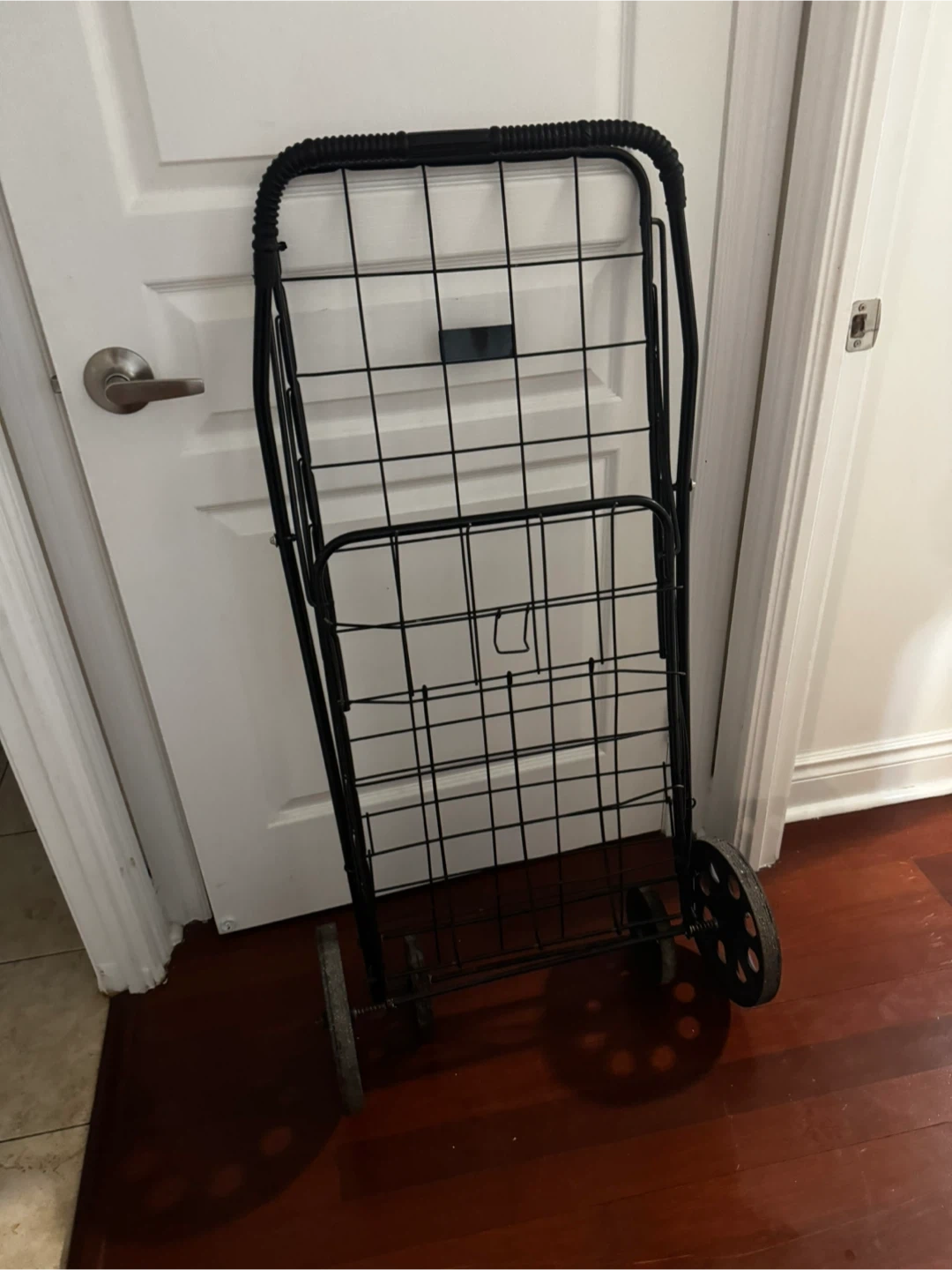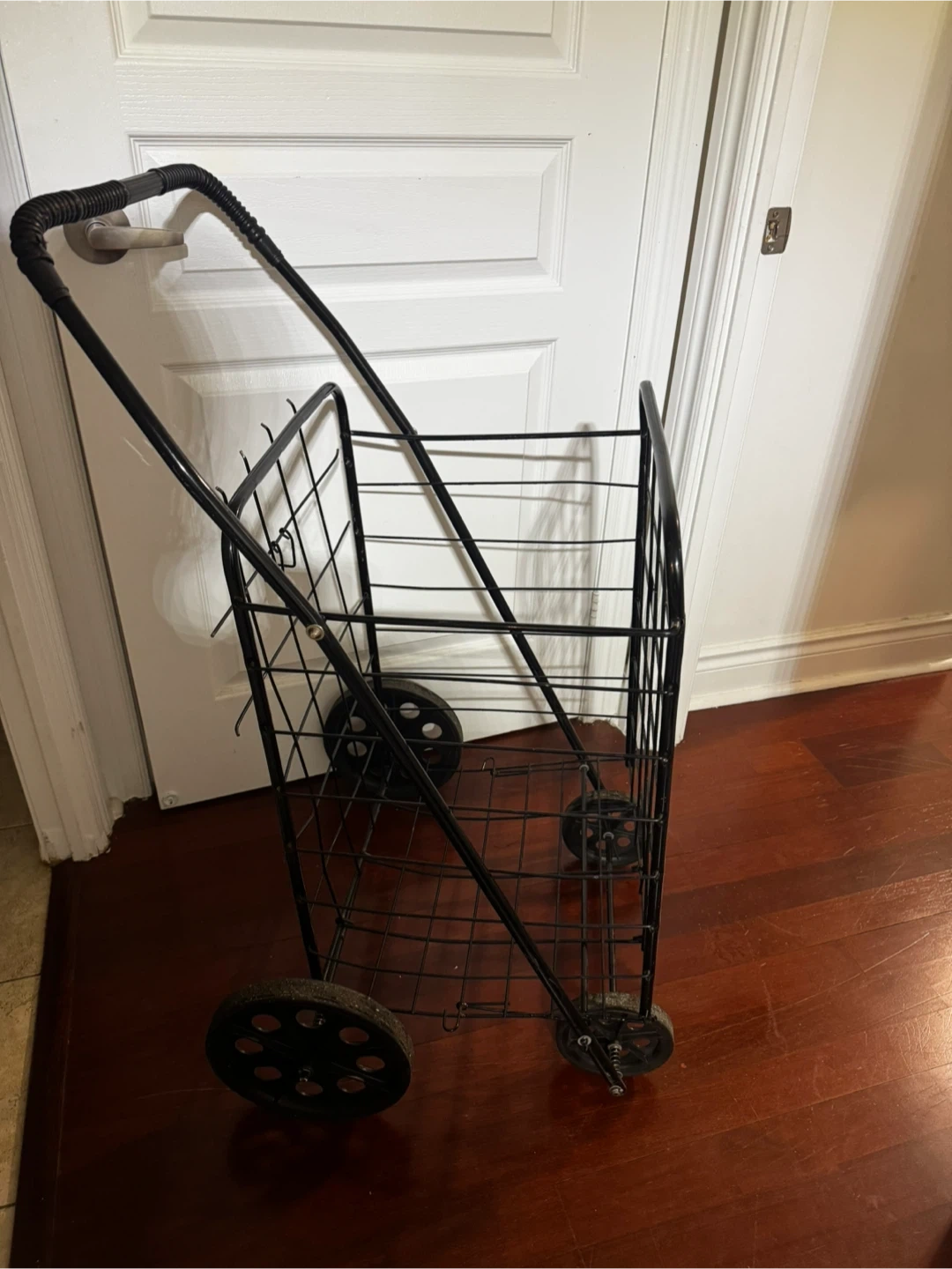 This foldable shopping cart is perfect for carrying groceries or laundry with ease. This cart is in good condition, ready to make your shopping trips a breeze.