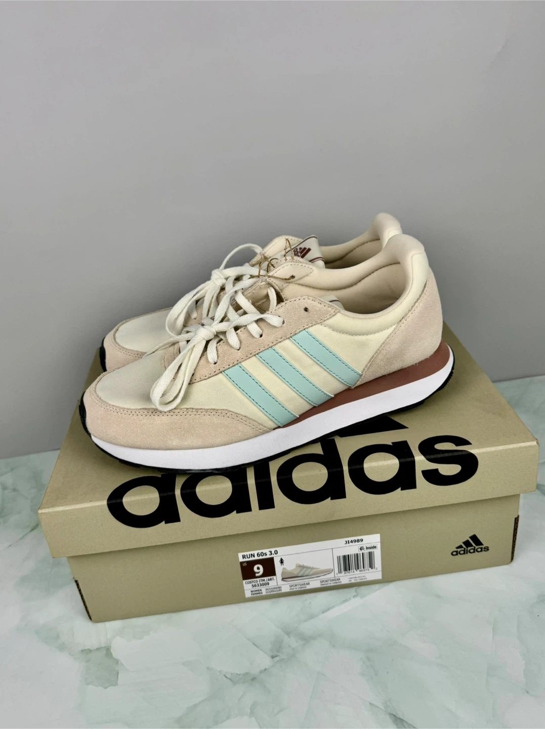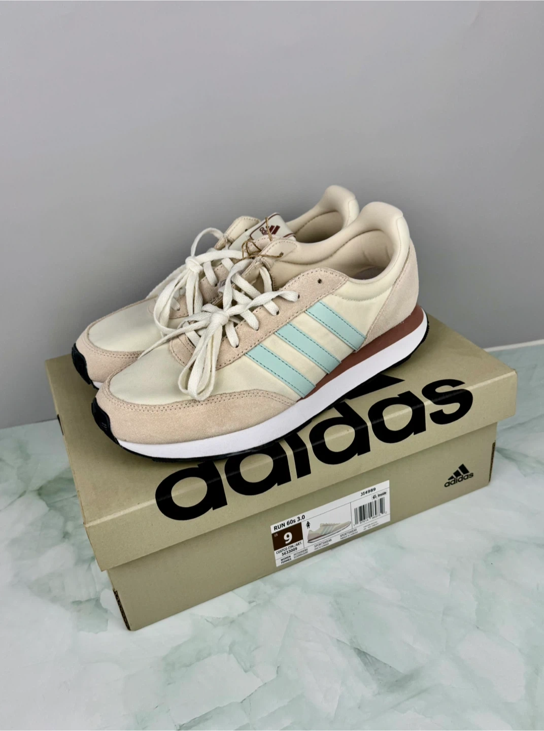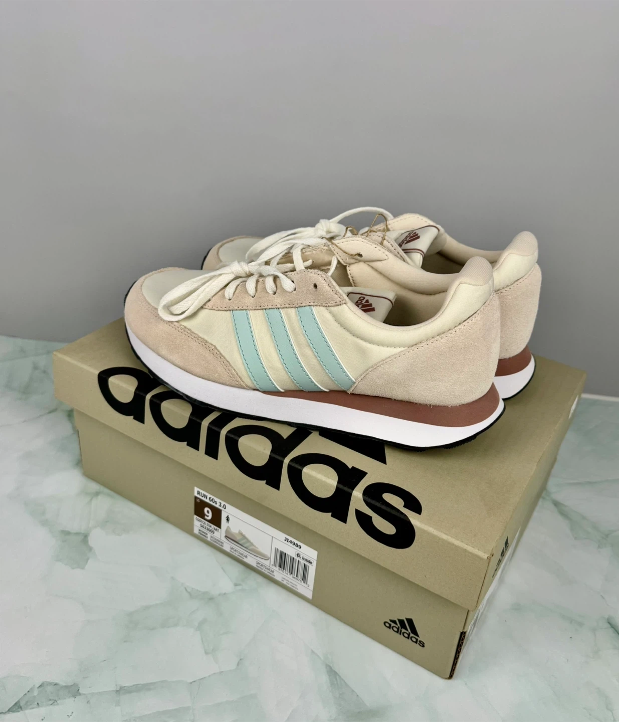 π Adidas Run 60s 3.0 sneakers in a cream and light blue colourway.