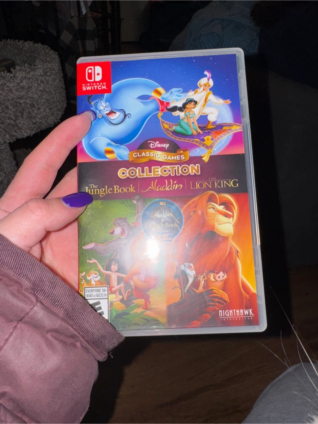 This collection features classic games: The Jungle Book, Aladdin, and The Lion King. All games are for Nintendo Switch. It's rated E for Everyone 10+.