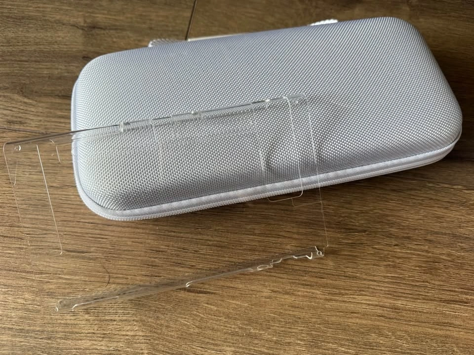 • Protection: White hard shell carrying case and a clear plastic protective cover for the console