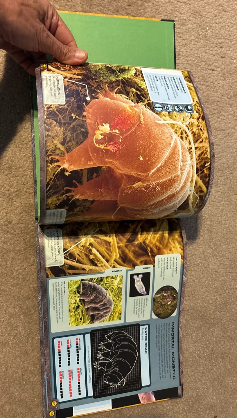 Selling a book called Micro Monsters: Extreme Encounters with Invisible Armies. It's a fascinating look at the world of microscopic monsters and how they survive! Perfect for anyone curious about the unseen world around us.