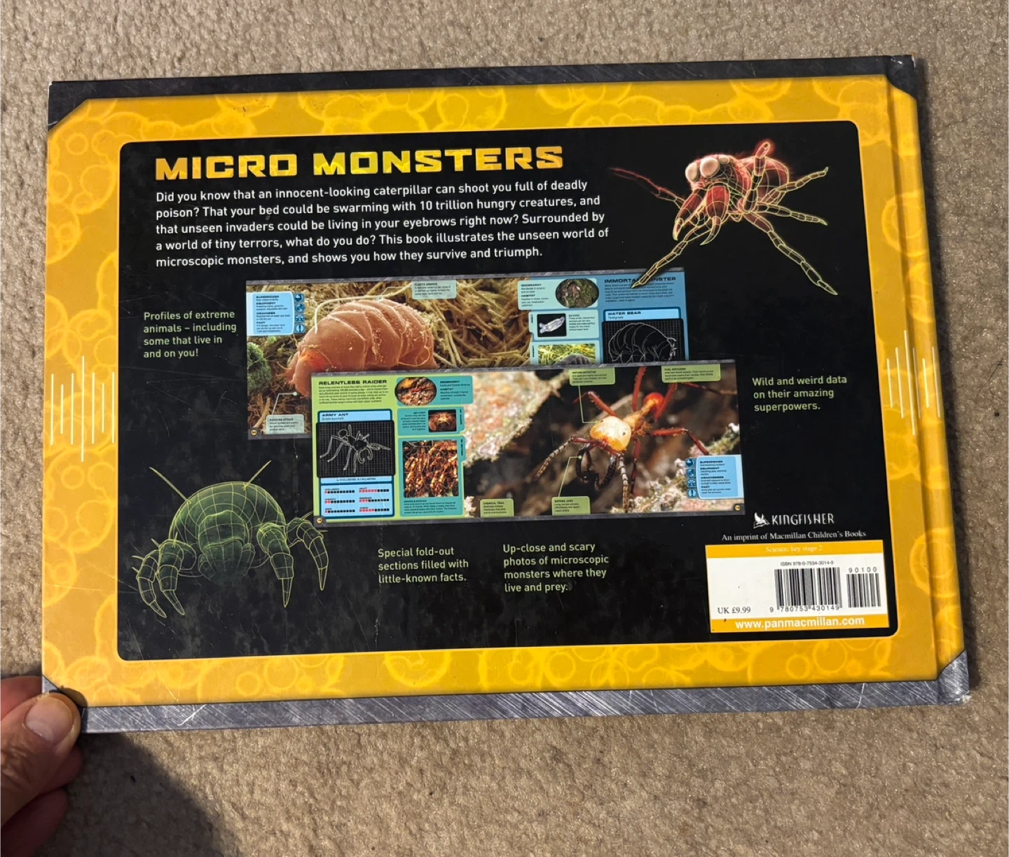 Selling a book called Micro Monsters: Extreme Encounters with Invisible Armies. It's a fascinating look at the world of microscopic monsters and how they survive! Perfect for anyone curious about the unseen world around us.