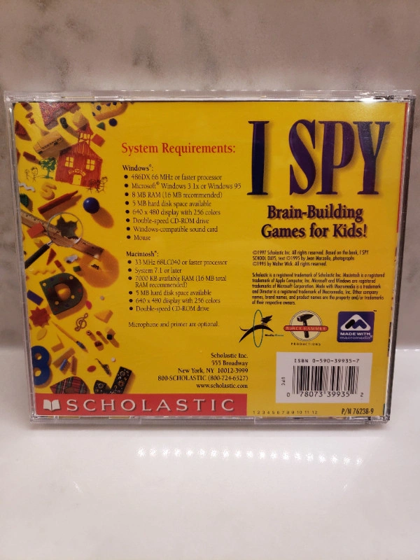 I Spy is a children's book series with text written by Jean Marzollo, and photographs by Walter Wick, which was published by Scholastic Press. Each page contains a photo with objects in it, and the riddles (written in dactylic tetrameter rhyme) accompanying the photo state which objects have to be found. Several video games based on the I Spy books are available for Windows PC, Nintendo DS, Wii, iOS, Leapster, and Game Boy Advance, including I Spy Spooky Mansion, I Spy Treasure Hunt, and I Spy Fantasy. These served as early examples of an increasingly popular hidden object game genre.