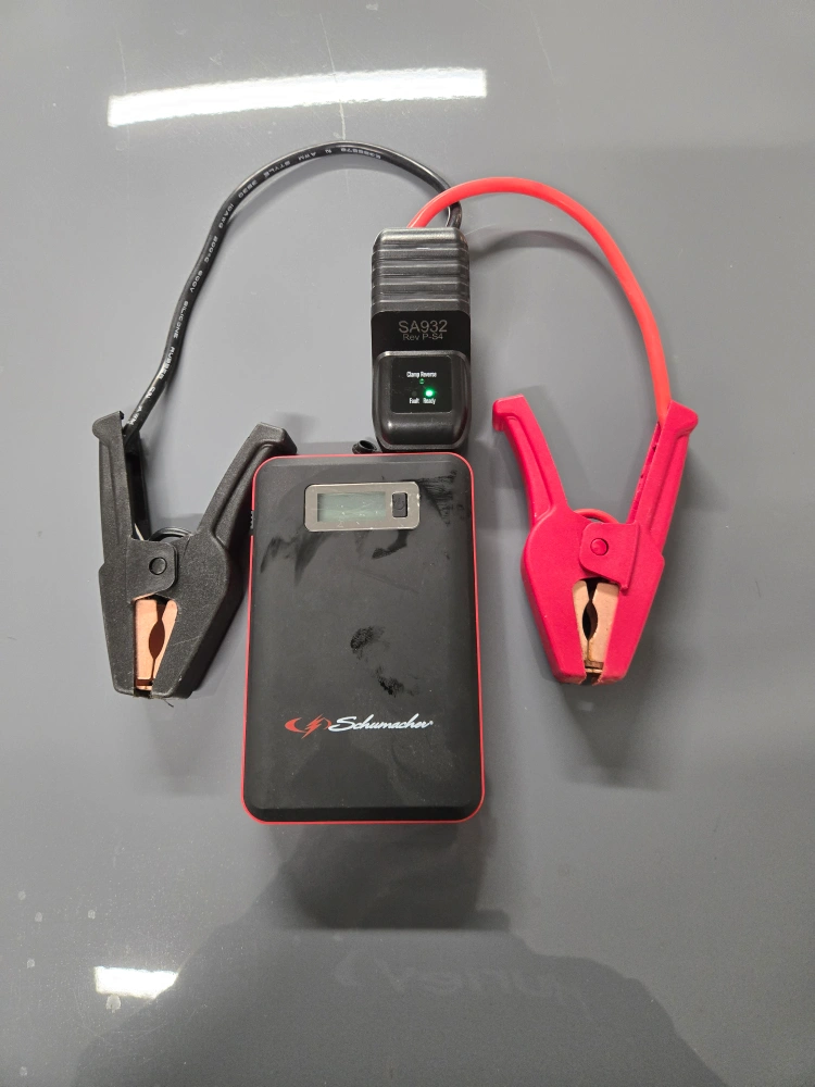 Portable jump starter pack. Includes cables and clamps. Good condition.