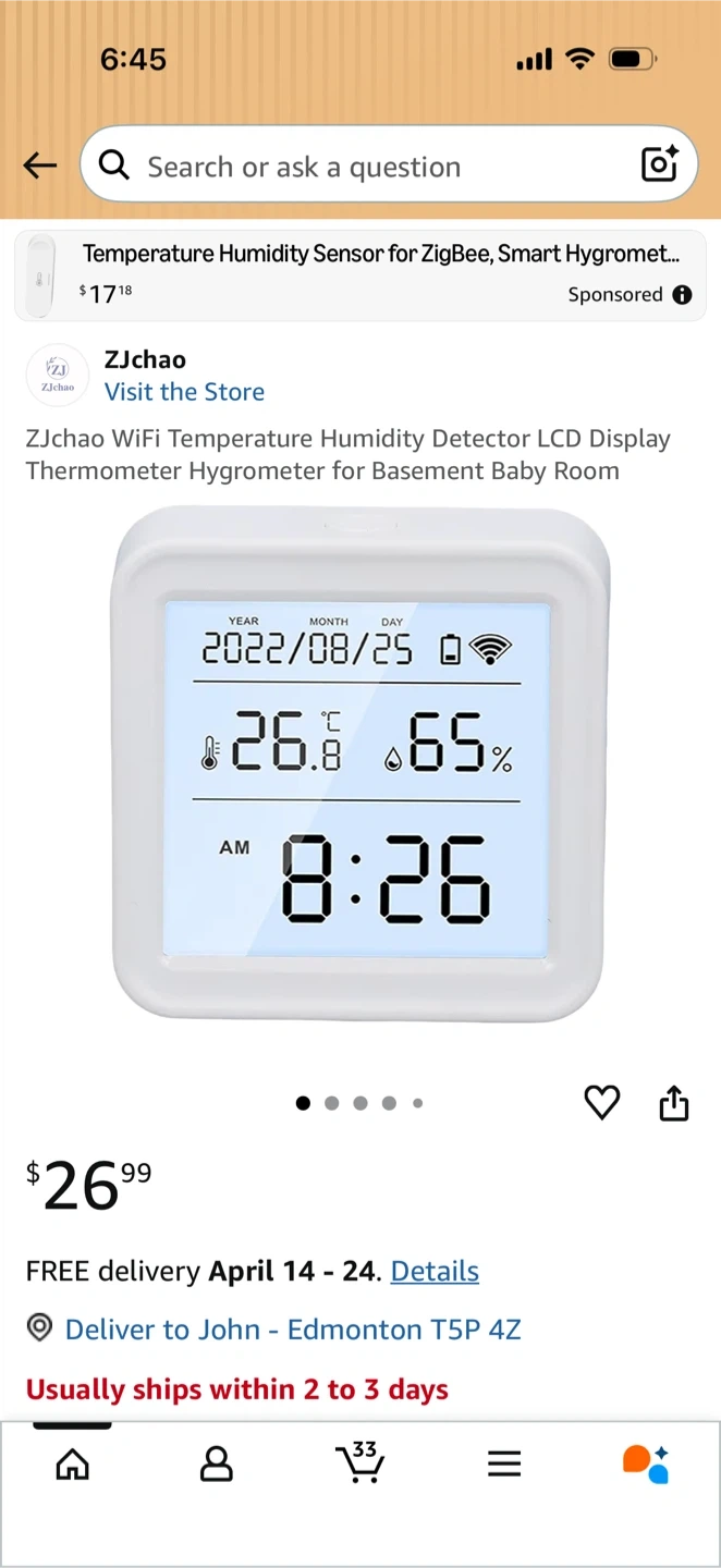 Tuya Wi-Fi Temperature & Humidity Sensor