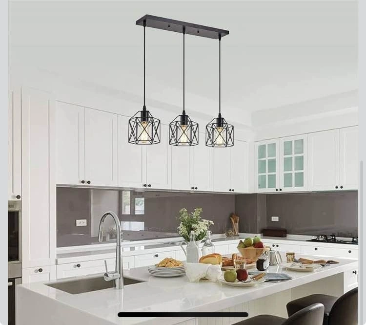 New 3 Light Pendant Lighting, Black Cage Metal Pendant Light, Industrial Rustic Farmhouse Kitchen Island Dining Room Hanging Lamp, E26 Bulb. Feel free to message if you have any questions!