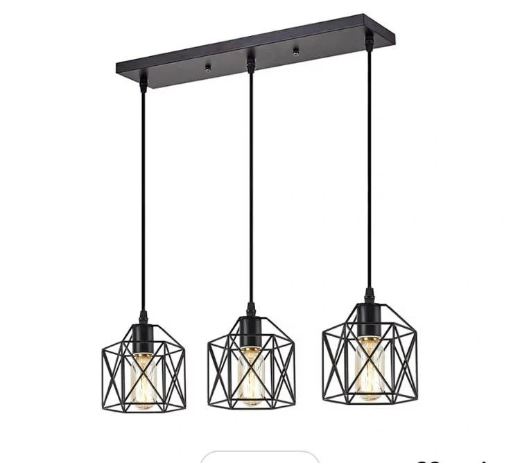 New 3 Light Pendant Lighting, Black Cage Metal Pendant Light, Industrial Rustic Farmhouse Kitchen Island Dining Room Hanging Lamp, E26 Bulb. Feel free to message if you have any questions!